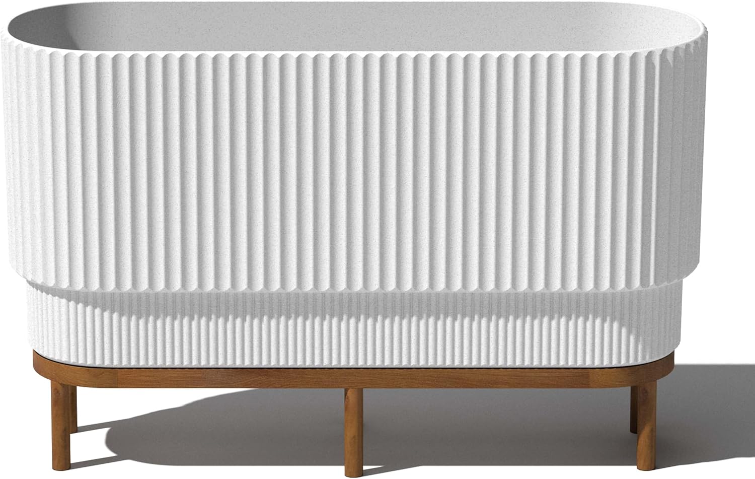 - DURABLE MATERIAL: Made from a patented plastic-stone composite, this fluted planter has a subtle textured finish and is all-weather resistant to cracks, scratches, UV and fading; perfect for hot or cold climates ranging from -20 to +120 degrees