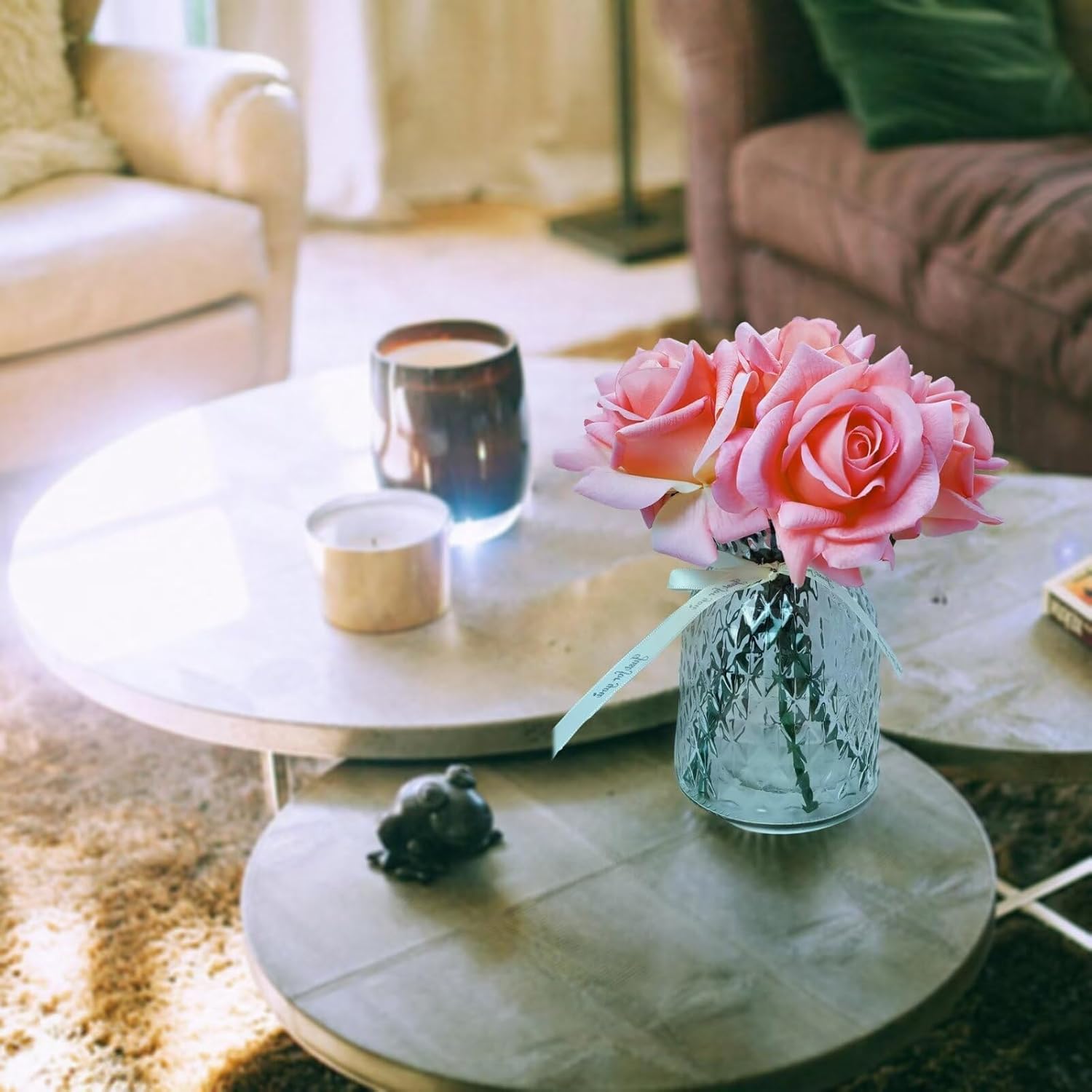Artificial flower real touch roses feel and look realistic fake roses with short stems, suitable for gift, for wife girlfriend mom friends, Indoor home table,cake, hotel, car decoration (pink)