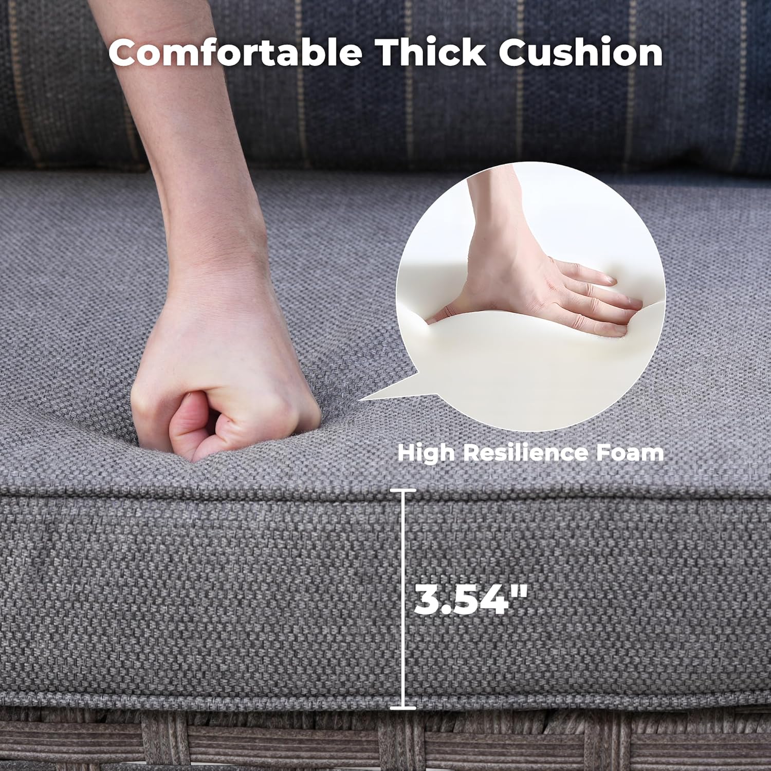 - All-weather Wicker Rattan: Our outdoor sofa sets have very durable wicker rattan for all-weather use and a natural texture with good coloring. The high-quality patio seating made of powder coated steel frame ensures good strength and stability.