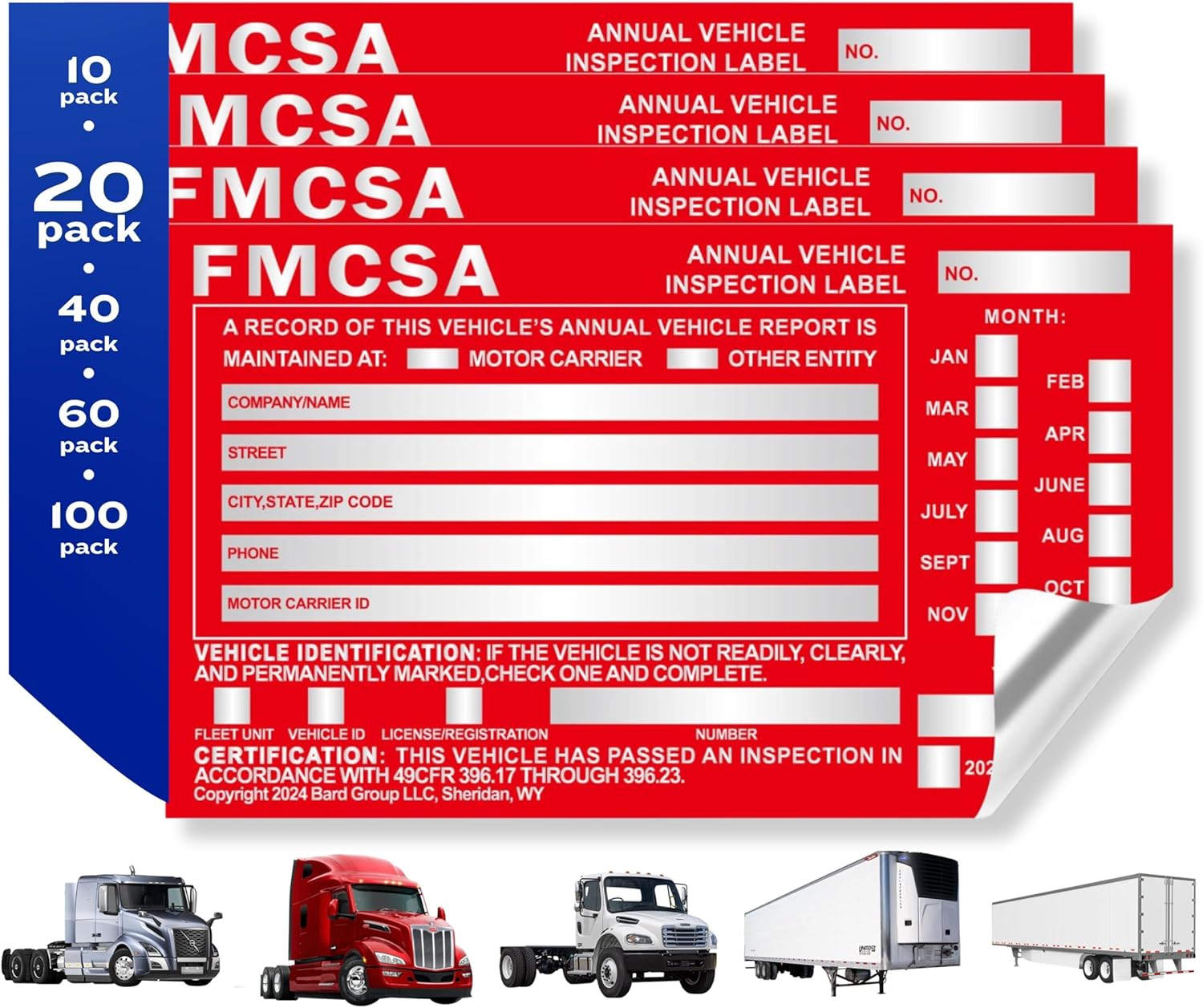 - Generous 20-Pack Quantity: This listing includes a bulk pack of 20 labels, making it ideal for fleet operators or those needing a substantial quantity of inspection stickers. This pack size provides ample coverage for multiple vehicles or extended use, offering both convenience and value.