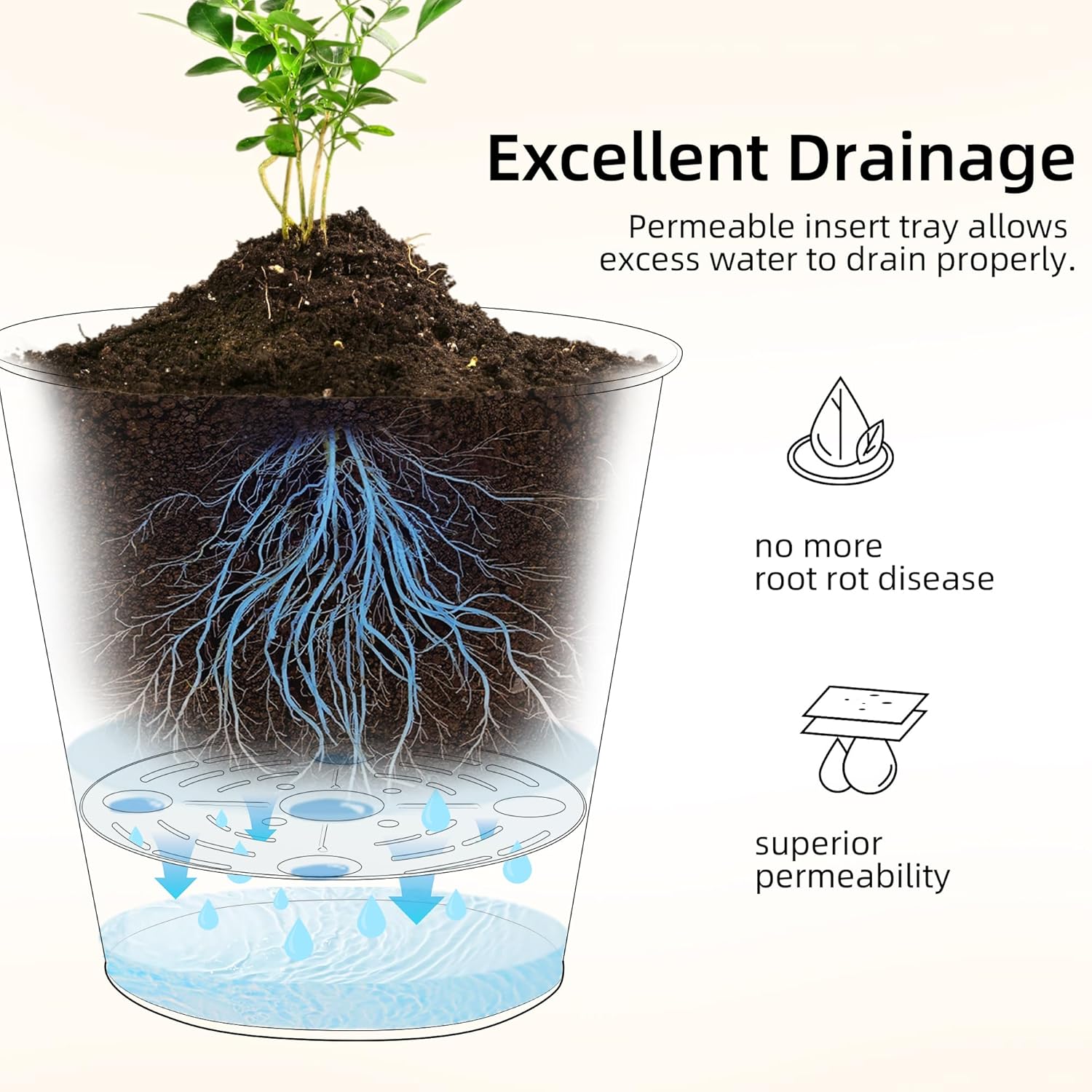 - INNER POTS: Package includes 2 large planters and each planter comes with a steel insert pot to reduce the amount of soil needed to fill the containers. Each insert has a drainage plate to ensure that the plant roots have sufficient ventilation and respiration. And each insert has a cotton absorbent rope, which can prevent plant roots from rotting by absorbing excess water