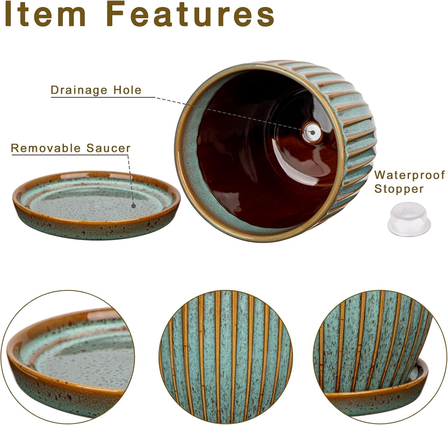 - Ceramic Planter Pot -The surface of the indoor planters are carved with line stripes, using superb glazing process and firing at high temperature, each ceramic flowerpot has irregular black spots effect on its surface, which make it exquisite and special, making the houseplant pots simply stunning, and thingking it will let your plants or flowers shine. Its elegant glazed colors and minimalist design can fit for any home dรฉcor style