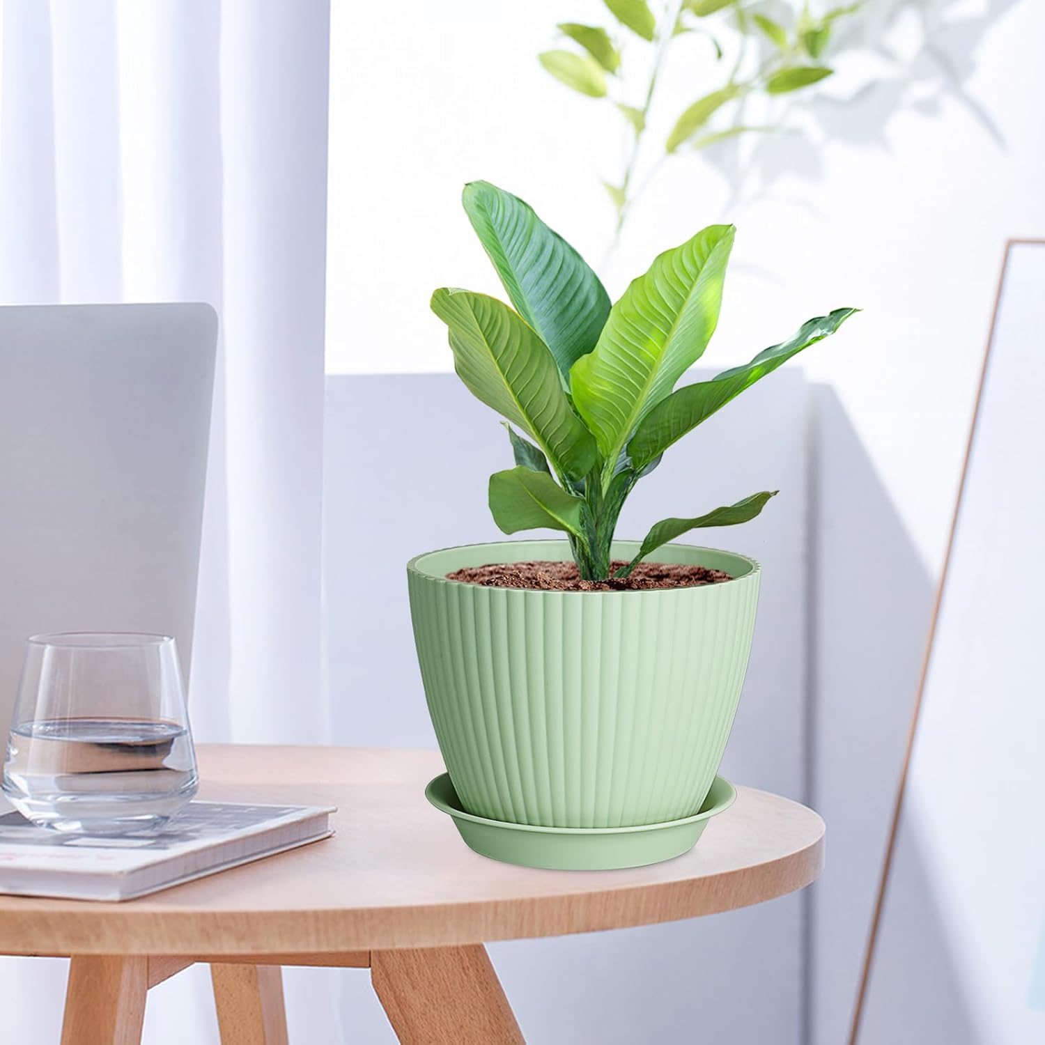 7/6.2/5.5/5/4.5/4 inch Plant Pots, 6 Pack Flower Pots for Small Indoor Outdoor Plants, Plastic Planters with Drainage Holes and Saucers for Garden Succulent House Plants, Green