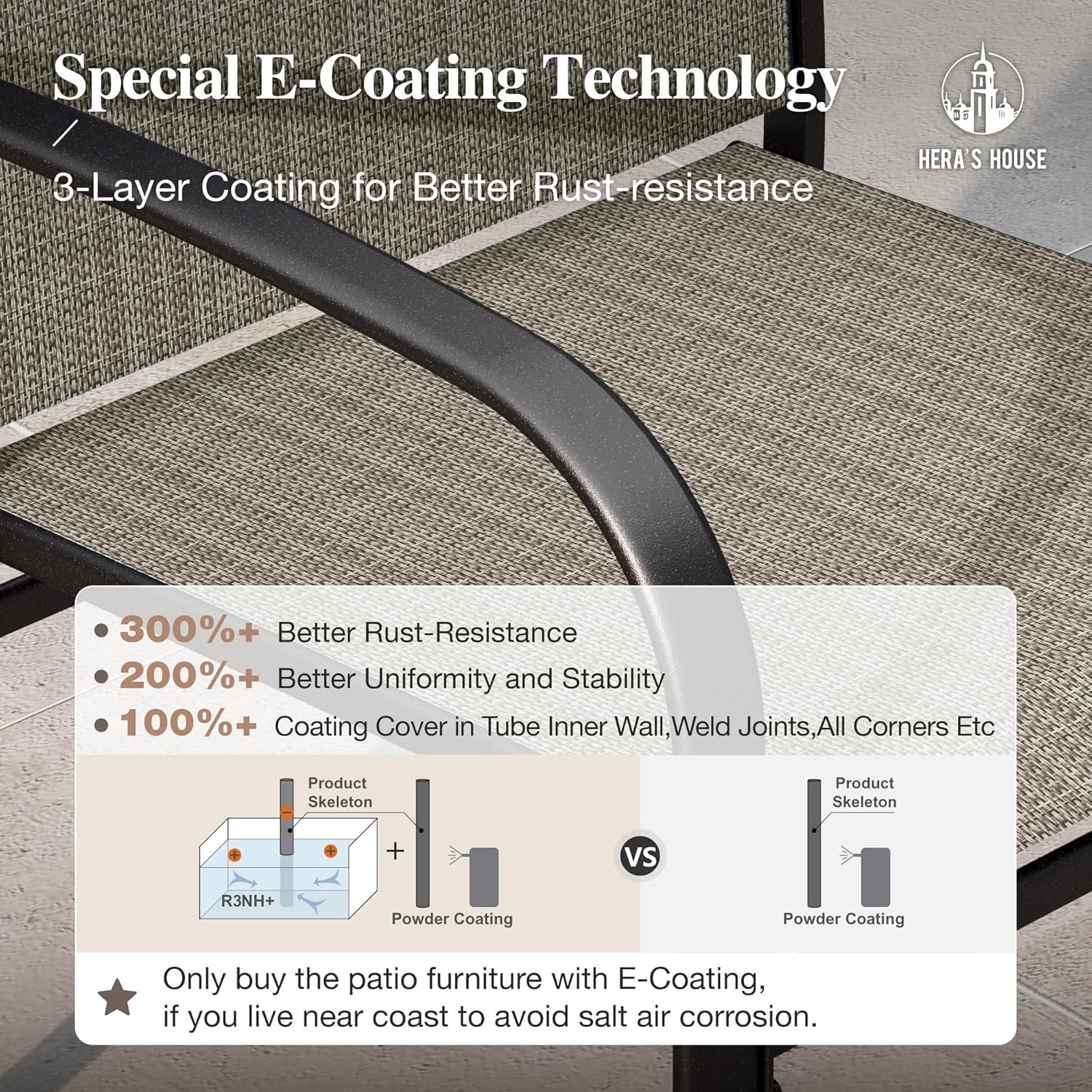 - ăE-COATING & POWDER-COATING TECHNIQUEăALL the HERA'S HOUSE steel frame of tables are processed by high-performance E-COATING and POWDER-COATING technique which provides extended protection against rust, scratches, rain, and UV harm. All weather resistant, anti-rust, easy to clean, no special care needed.