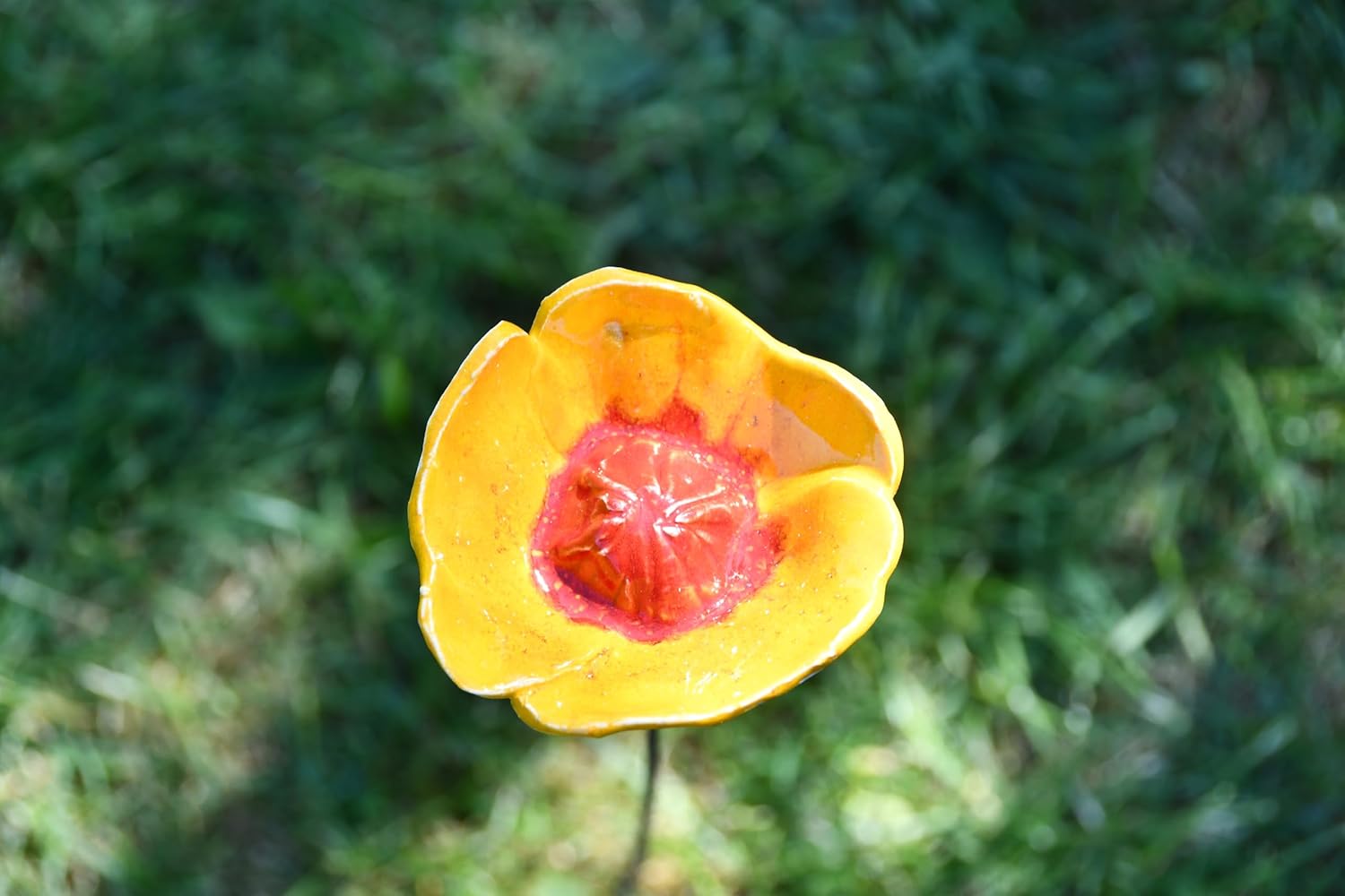 Ceramic Garden Decor - Flower Lawn Stake - Outdoor Statue - Perfect, Unique Gifts for Gardeners Woman, Men, Yard Gifts - Handmade, Frostproof