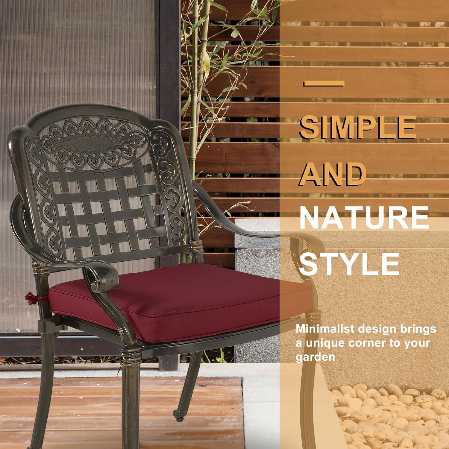 - 【Durable 3-Piece Dining Set】 - Made from cast aluminum for long-term durability. Resistant to rust, weather, fade, crack. This patio set includes 1 round table, 2 chairs, 2 cushions, and they stay in perfect condition regardless of the weather. It's also easier than ever to clean, just use a dry or damp rag to wipe down.