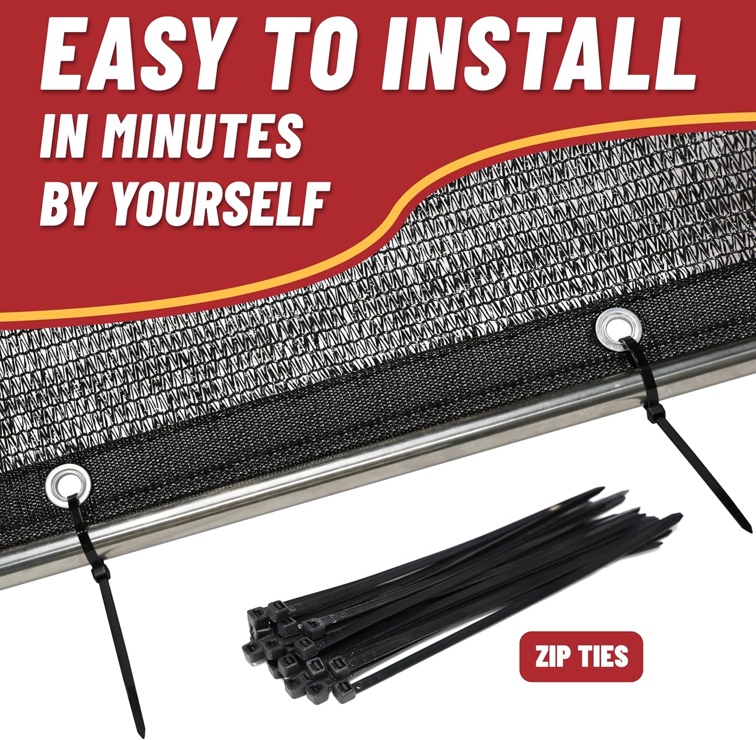 - Easy Installation: With 40 zip ties and features grommets every 2 feet on each side for simple hanging and added stability
