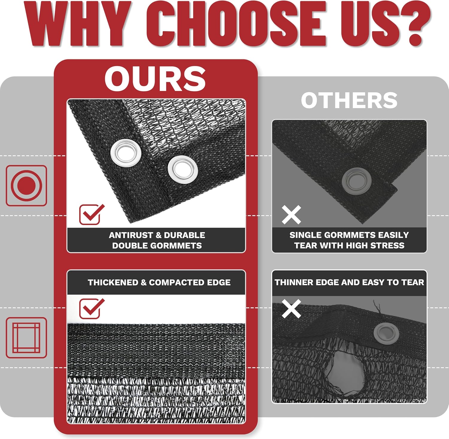 - 50% Shade Rate: Shademart Shade Cloth blocks 50% of sunlight, reducing solar exposure and lowering temperatures. It promotes airflow, reduces water evaporation