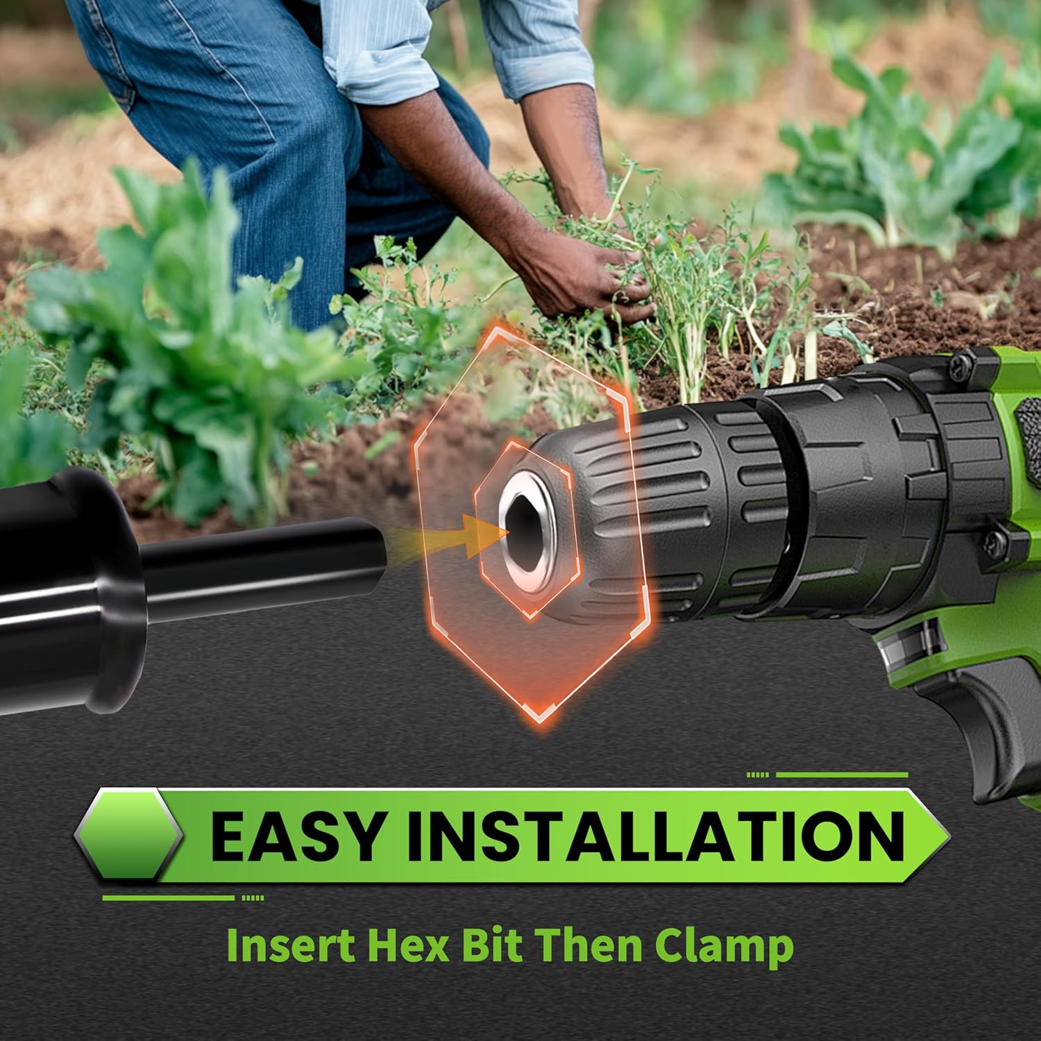 - 【Easy to Use】Just fix the auger drill bit on the drill clamp of the garden auger to use, hold the electric drill with both hands for planting, and then open it to dig down. The garden auger spiral drill bit pulls the soil back and you'll get the perfect back hole. We recommend that you use an electric drill or cordless drill with 18v and above. Tip: Before installing the auger drill bit, please idle for a few seconds to check whether the drill bit holder is stable.
