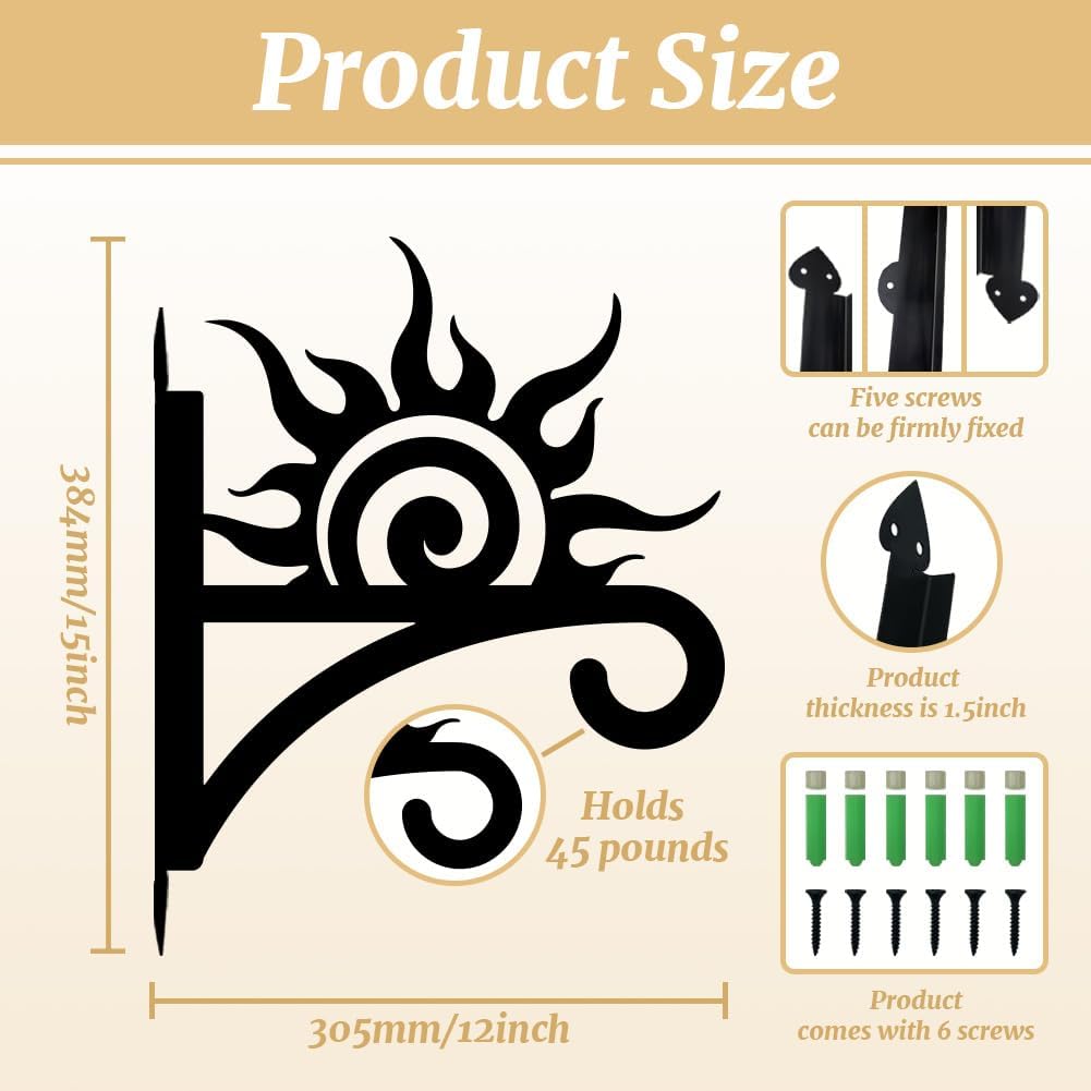 peacoblue Iron Plant Hangers Hooks Sunrise for Outdoor Indoor Hanging Plants Flower Fern Pots Lantern Bird Feeder Wind Chimes, 12"x15" Weather Resistant Metal Wall Holder for Porch Garden Farmhouse