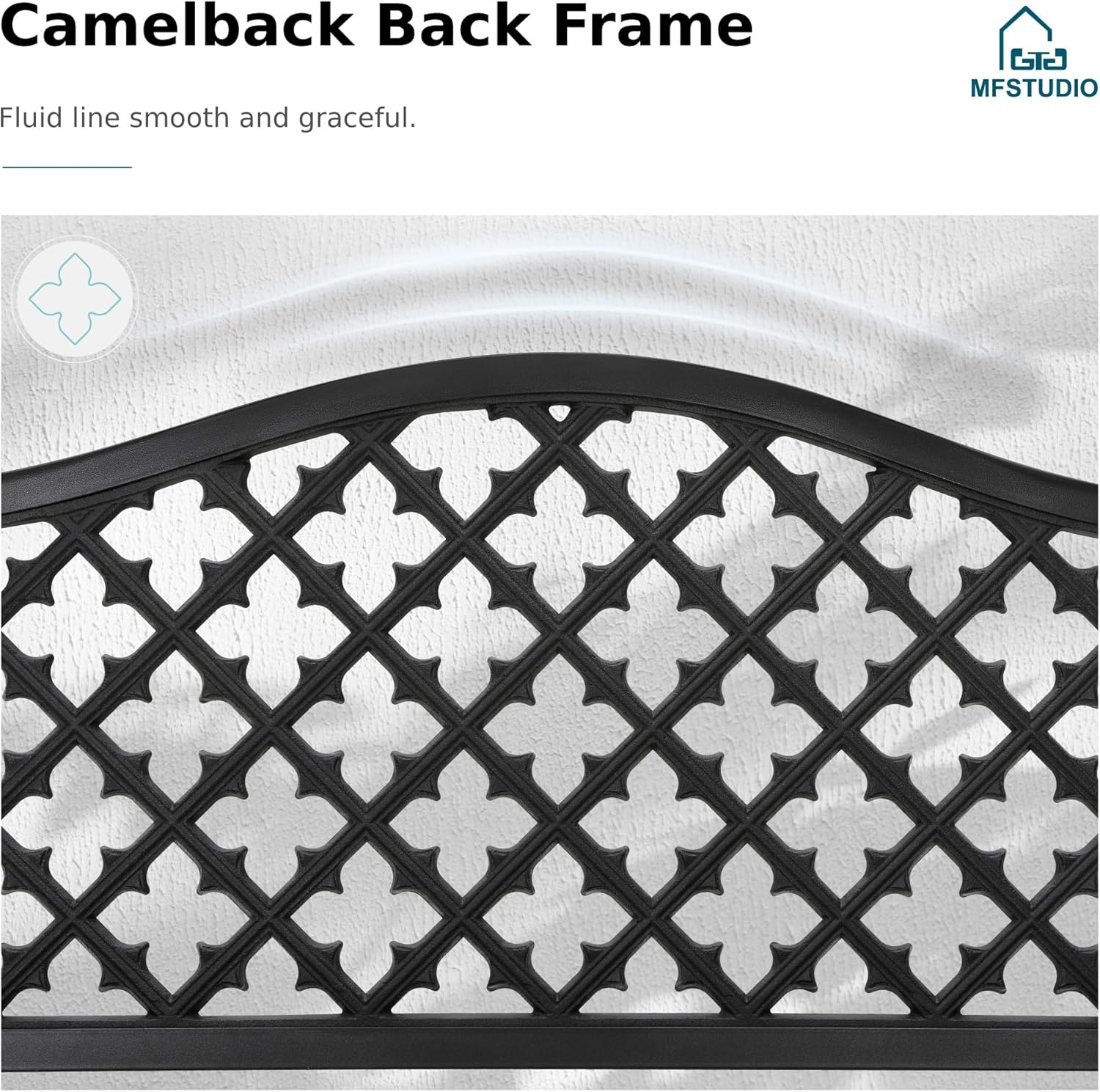 - 【Geometric Backrest】 Transform your outdoor space with our stunning park bench, featuring a one-of-a-kind geometric cut-out backrest. This eye-catching design not only adds a modern touch to your garden or corridor but also encourages airflow, making it the perfect spot to relax on warm days