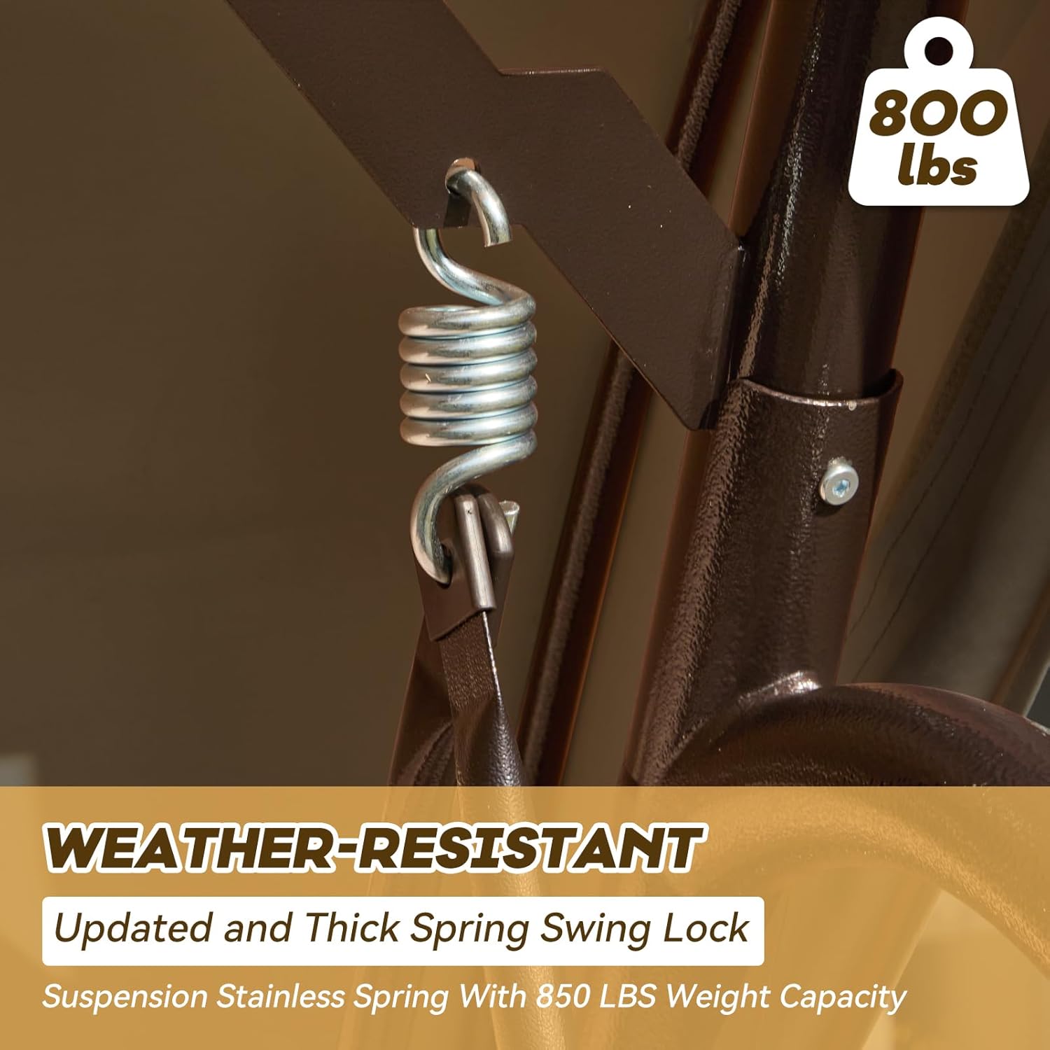 - ăSturdy and Safe Constructionă: The maximum weight capacity of porch swing is 800 pounds, our glider swing is designed for 3 adults to sit comfortably. The swing outdoor has a reliable buckle on backrest, ensuring stability and preventing any unwanted swinging. The double protection of 3 seat garden swing is designed for preventing accidental tipping.