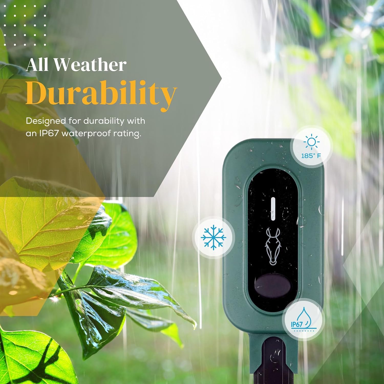- 【User-Friendly & Durable Design】A compact, low-profile probe slips cleanly into pots or beds without disturbing roots. IP67 water-resistant housing stands up to rain, splashes, and dust. Powered by 2×AA batteries for up to 1 year (usage dependent), it offers quick, wire-free setup and minimal maintenance—ideal for beginners and pros.