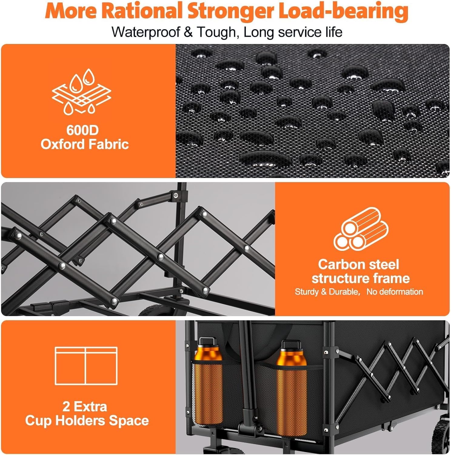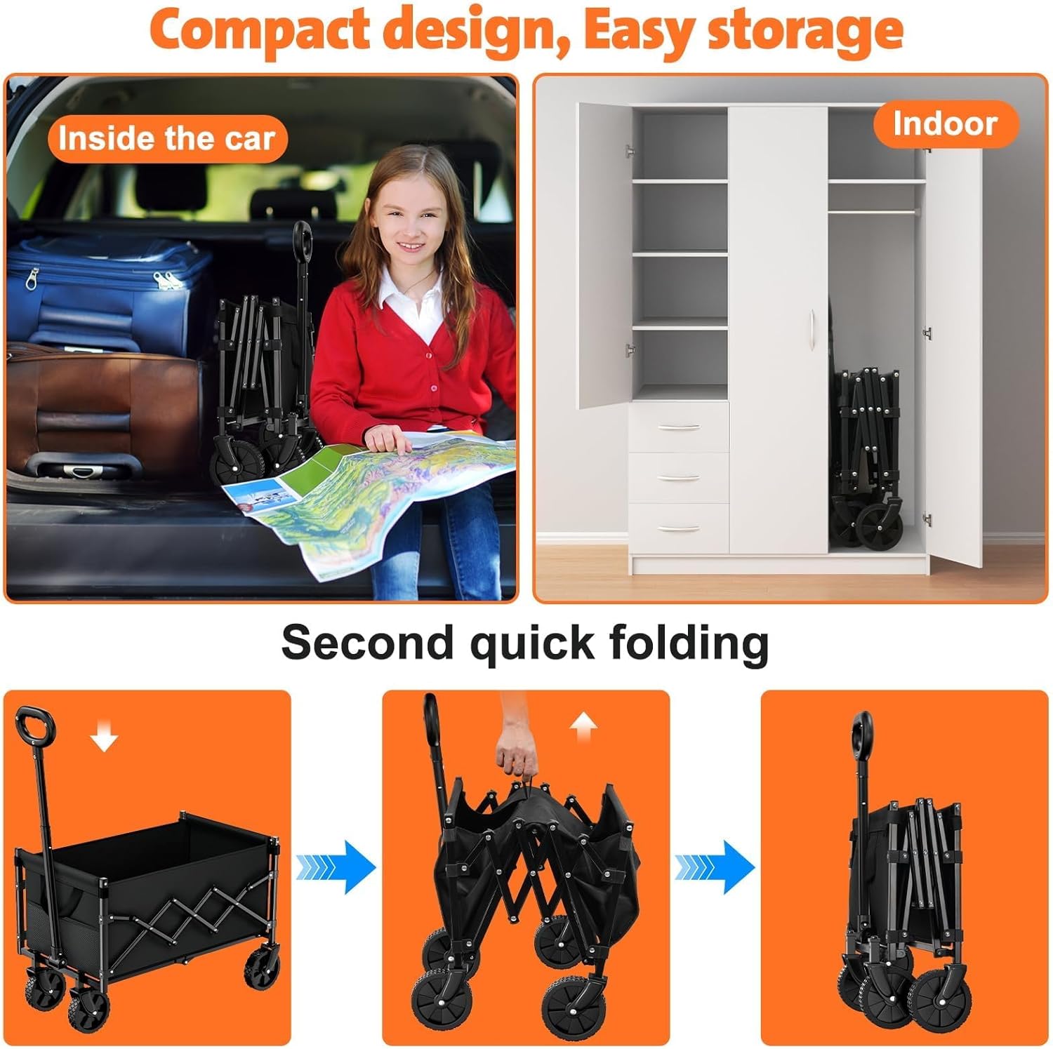 - Wide Use-Utility Wagon: Designed with four all-terrain wheels, including two 360Β° rotating front wheels, our wagon cart effortlessly moves over various terrains. Whether you need it for shopping, gardening, picnicking, camping, or handling sports equipment, our utility wagon is the perfect companion