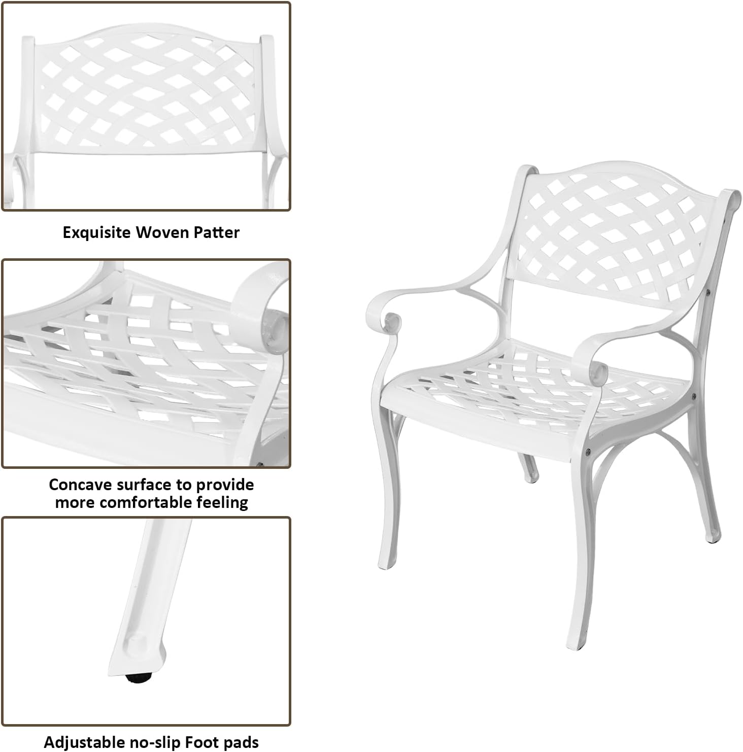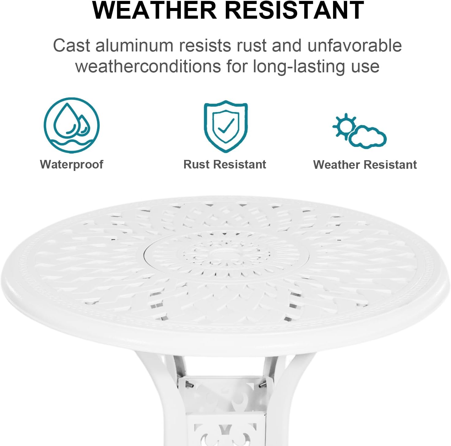 - 【Exquisite Cast Aluminum Patio Furniture】: The outdoor bistro table and chairs set of 2 are made of sturdy cast aluminum material, using an environmentally friendly coating that is weather resistant, rust proof, fade resistant, and antioxidant; Although the cast aluminum structure is lightweight, it is sturdy enough to avoid deformation during use