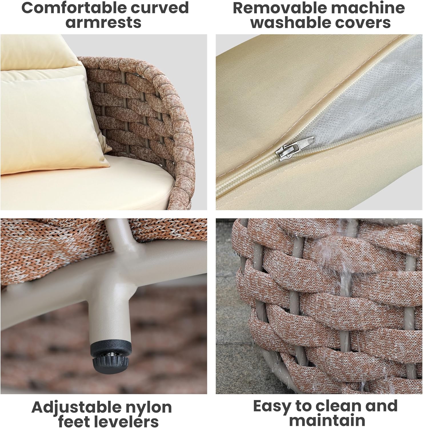 4 Piece Aluminum Patio Furniture: Hand Woven Rope Sofa - Modern Outdoor Sofa Seating with Cushion - All Weather Patio Set for Deck, Yard, Garden, Poolside, Hotel - Terracotta
