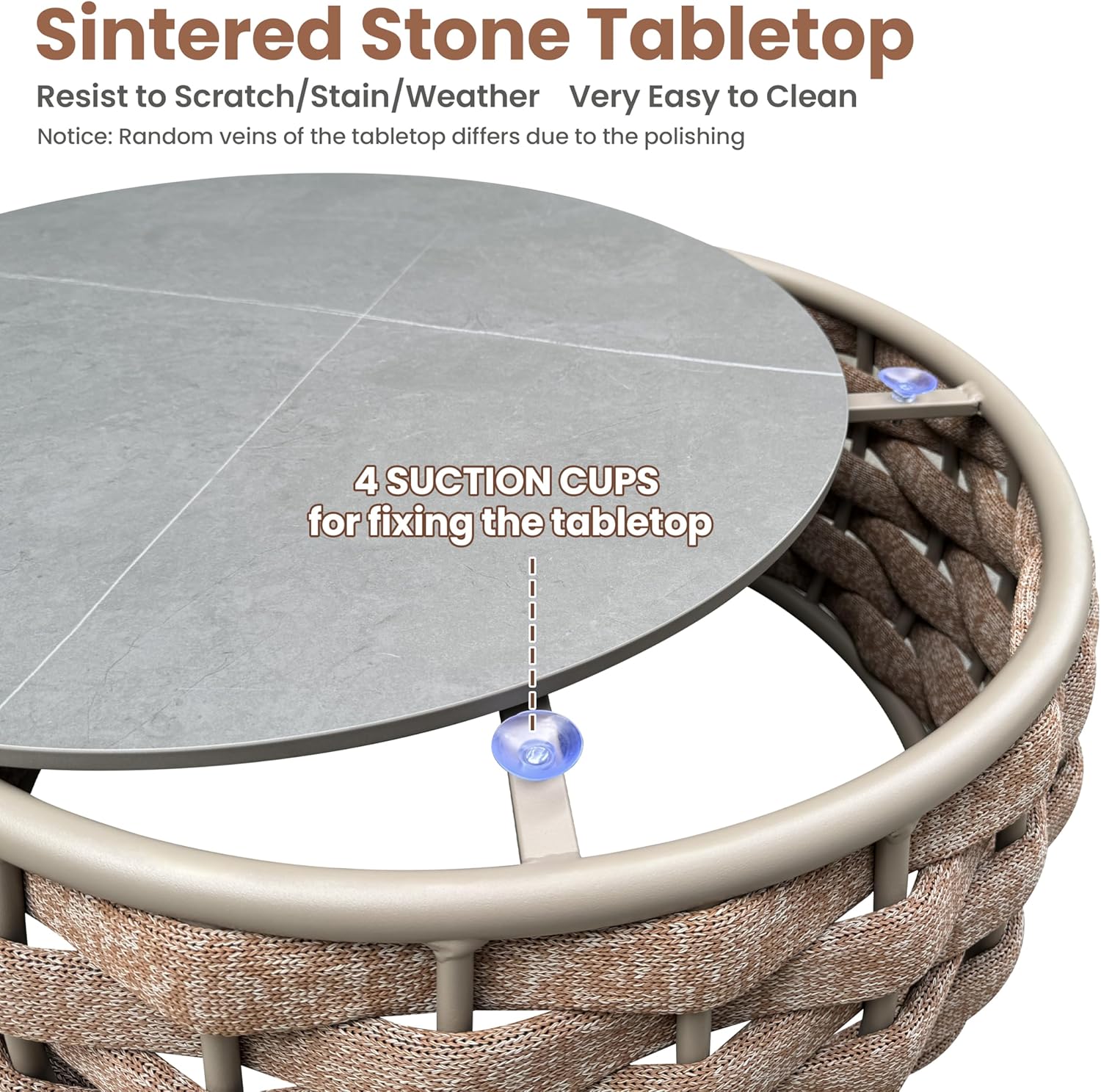 - Easy cleaning and scratch-resistant sintered stone tabletop is fixed by suction cups. Cushions cover replaceable removal and machine washable. Adjustable feet levelers for uneven floor also prevent scratching