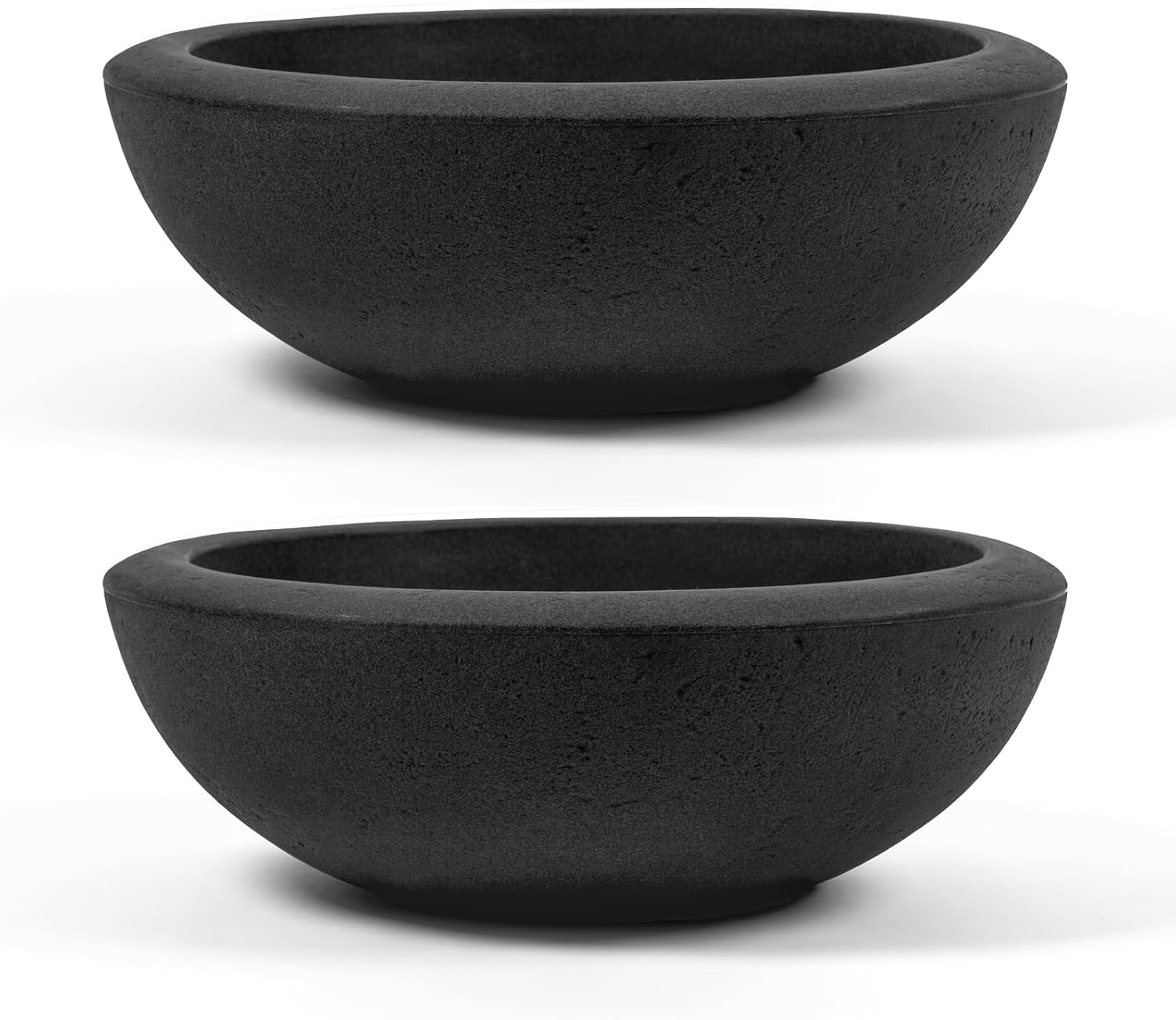 ARBORA 26" Santorini Bowl 2-Pack with Classic Black Finish - Polyresin Indoor and Outdoor Planters, Durable, Weatherproof, Lightweight, Large Plant Pots for Patio, Garden, Deck, Entryway