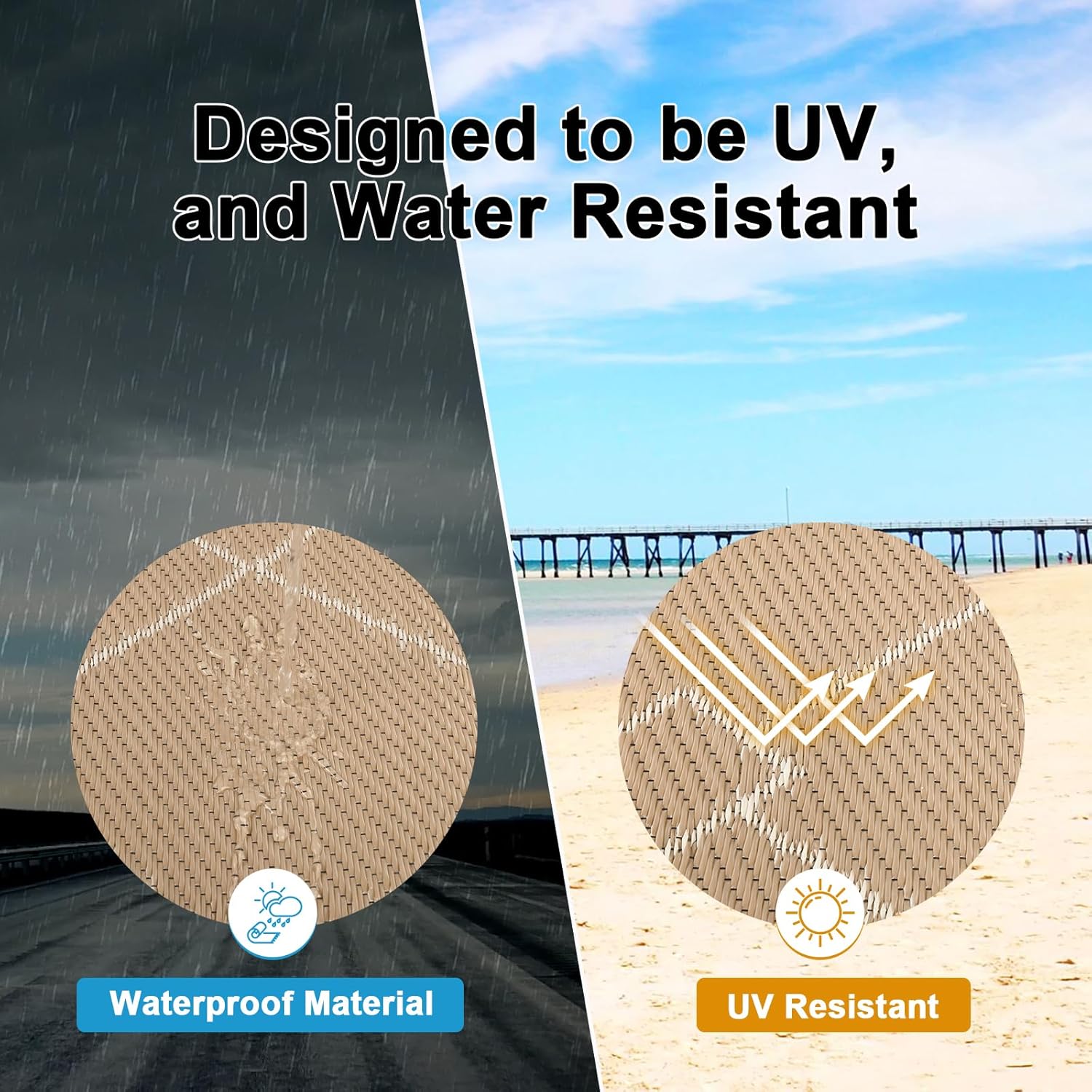 - Premium Material Outdoor Doormat: This reversible outdoor doormats are made from high quality recycled plastic straws and be woven tightly, durable enough, no fade, water resistant. It's soft and comfortable to walk on barefoot.Plus, the high-end UV coating and edge heat treatment technology prevent fading and sun damage without worrying about wear and tear.