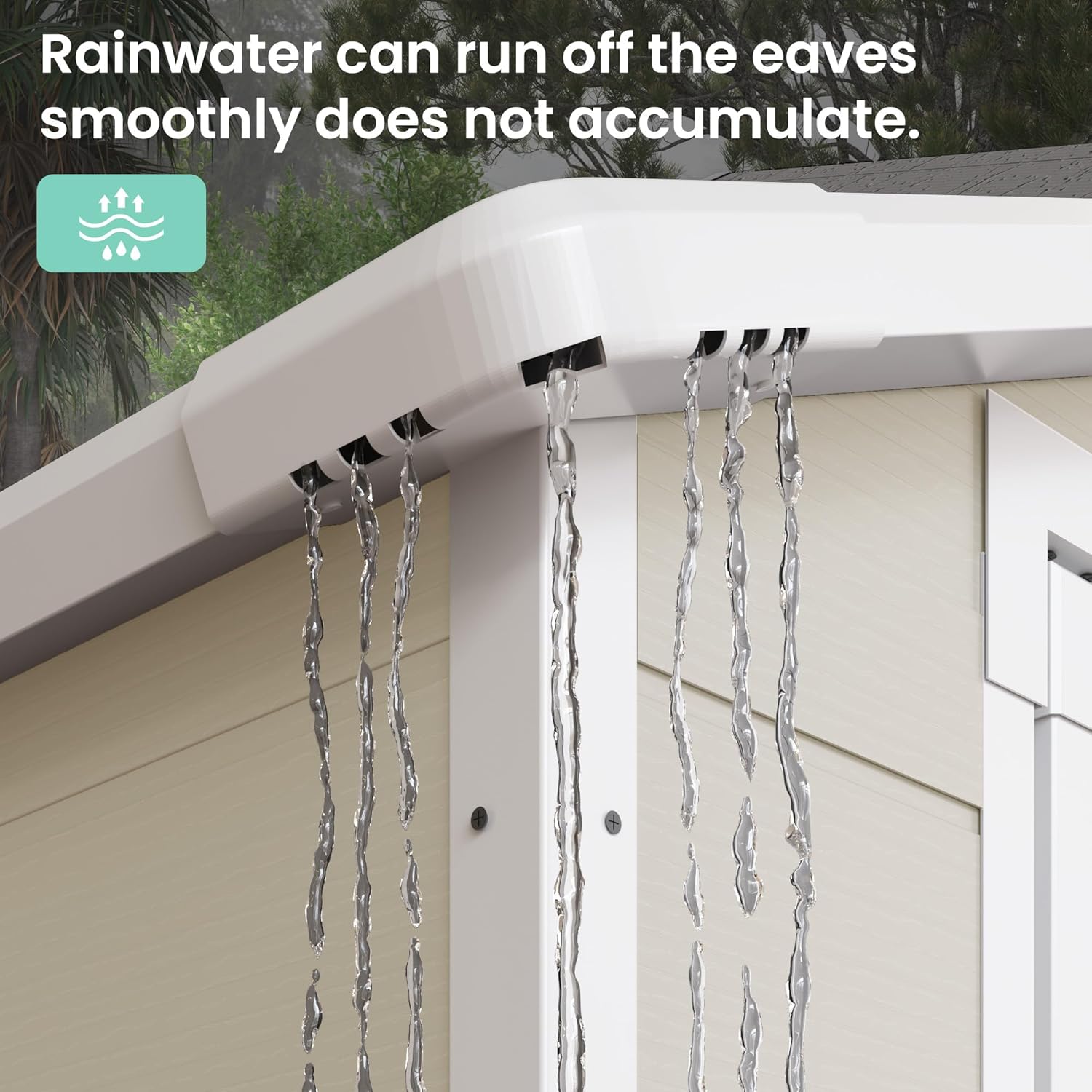 - RECYCLABLE RESIN MATERIAL: Our storage shed is crafted with 12 MM premium polypropylene resin plastic, which is recyclable. Resin shed is corrosion-resistant, waterproof, rustproof and with UV protection for more than 8000 hours, less bending and puncturing, worry-free for use in all weather conditions. It can be used daily for five years without fading