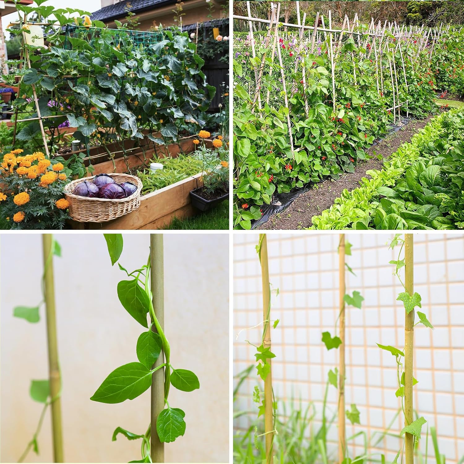 - Easy Installation, Adjustable Length-Installing the bamboo stakes is simple—just insert them into the soil. If the length is not suitable, you can easily cut them to your desired size, making them perfect for building trellises or tents to provide natural support for climbing plants. Tip: If the ground is soft and warm, installation is easy. For hard or frozen ground, we recommend using installation tools for assistance.
