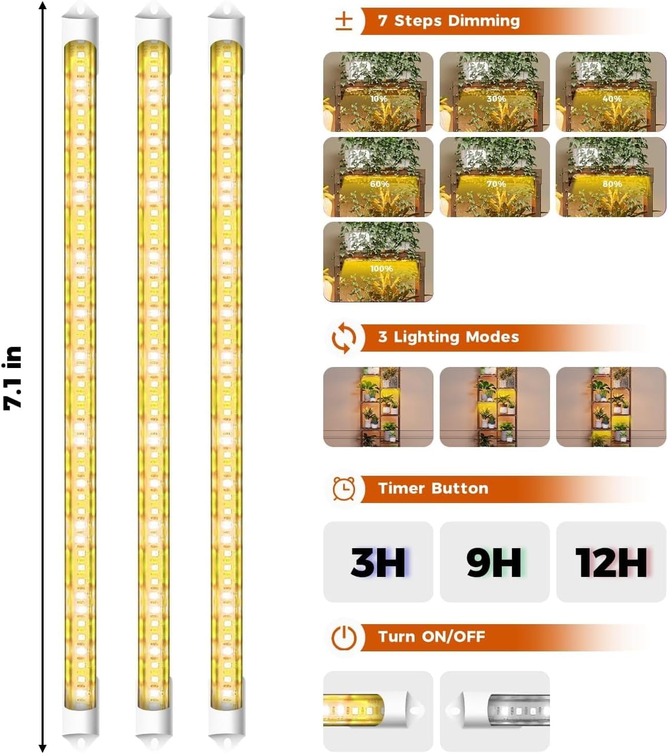- Flower Stand with Grow Light: The plant light contains 3 supplemental light modes: 1. 48 leds warm white(3000k), only 3000k high uniform light ,like sunlight improve seeding growth ; 2. Warm (660nm): promote plant growth , flowering and fruit; 3. Full Warm White (380nm-780nm), Provide universal full spectrum which can meet the light conditions your plants need most in different stages