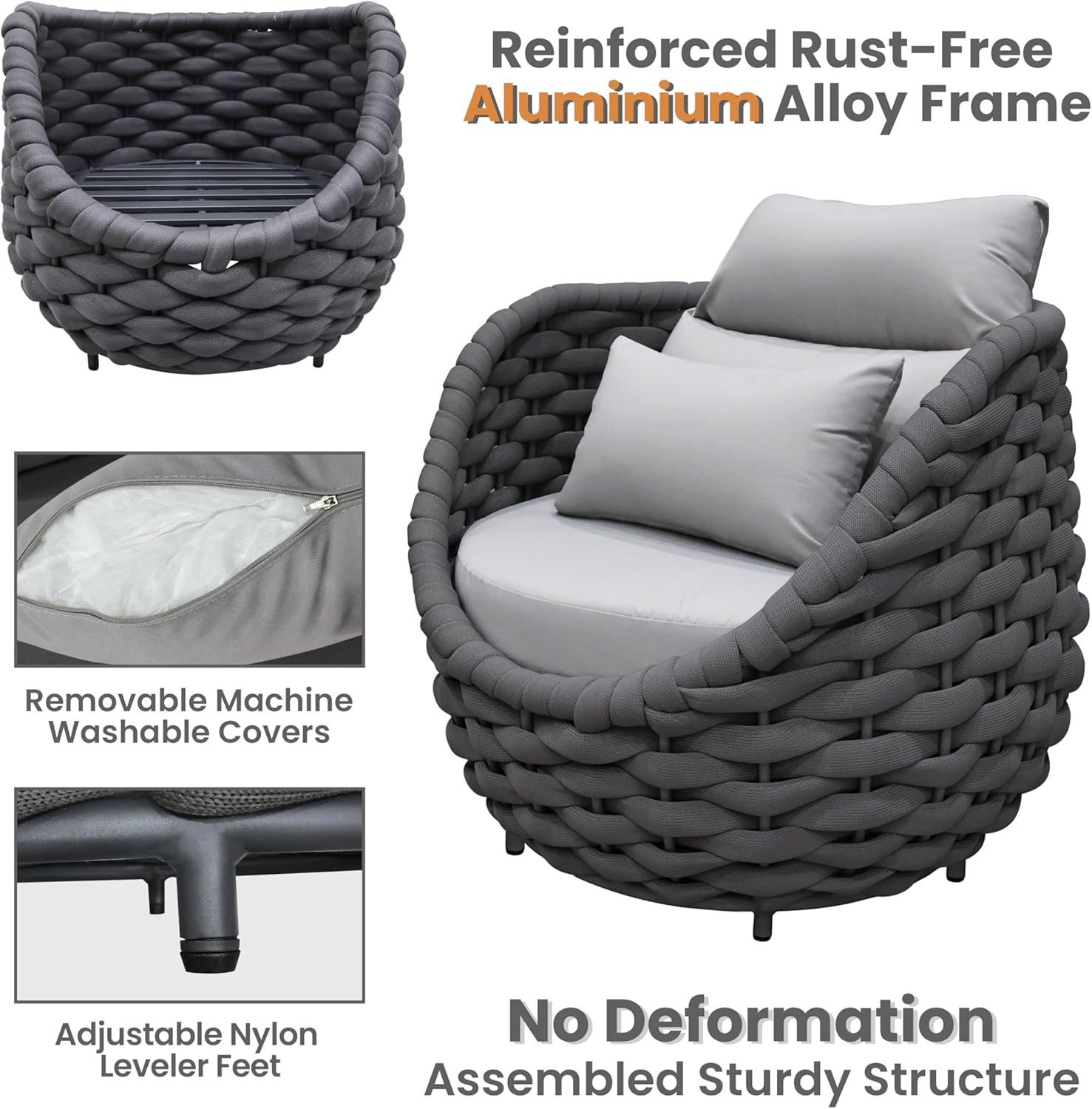 3 Pieces Woven Rope Patio Furniture Sofa Sets: Aluminum Outdoor Conversation Set of 2 - Assembled Modern Cushions Couch Armchair Table Set - All Weather for Indoor Deck Porch Pool Hotel