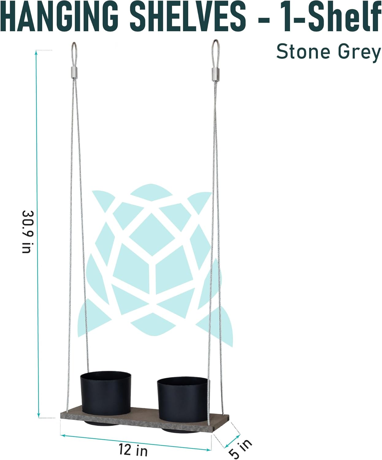 Urban Garden Decor with Pots Included, Hanging Planters for Indoor Outdoor Plants, Hanging Flowerpots, Wall Hanging Plant Holder Window Plant Shelves (Stone Gray, Shelf 2 Pots)