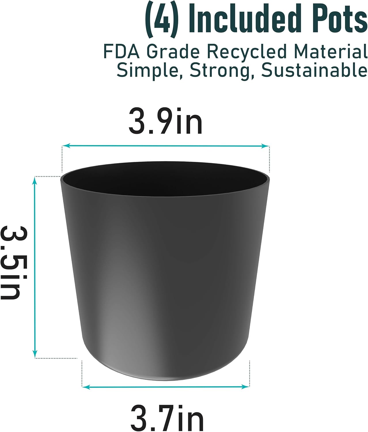 - SIMPLE & STYLISH DESIGN: This garden case is designed to hold 4 included pots (Approximately 85.6 cubix inches of soil capacity (21.4 per pot)made from recycled plastic, combining functionality with a sleek aesthetic for indoor or outdoor gardening.