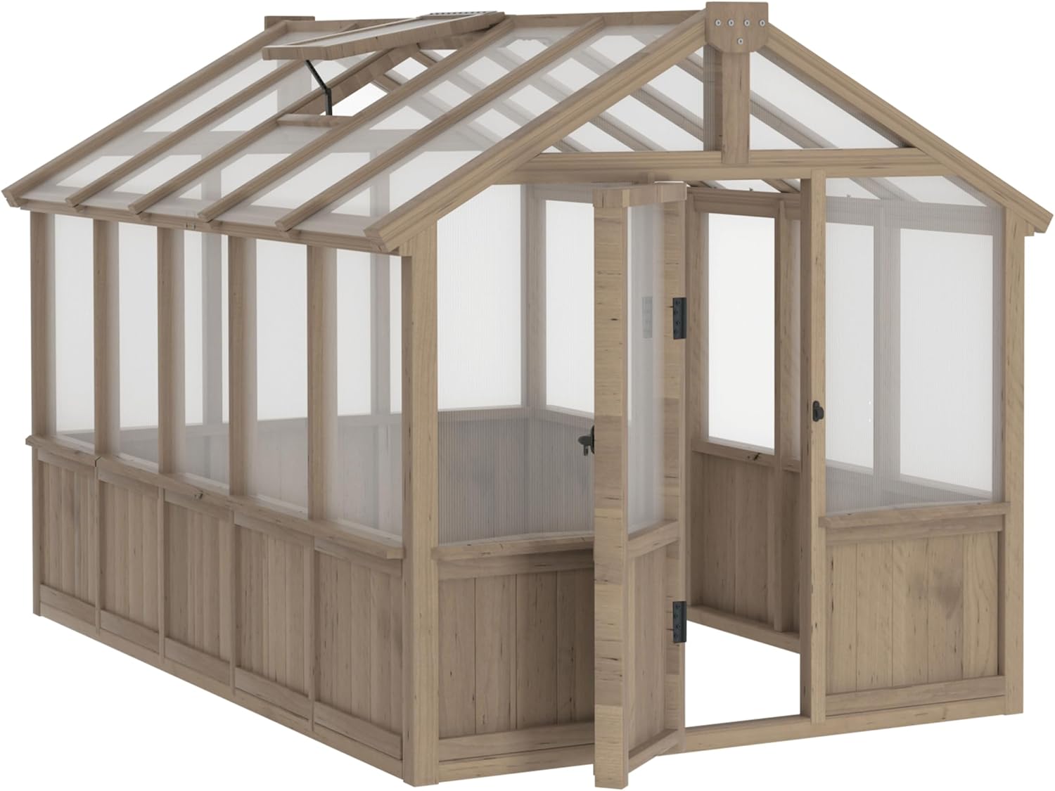 Mupater 6'x10' Wooden Greenhouse for Outdoor, Heavy Duty Green House Kit with Ventilated Window and Lockable Door, 6mm MWPC Panels for UV Protection, Walk-in Greenhouse for Backyard, Patio, Lawn