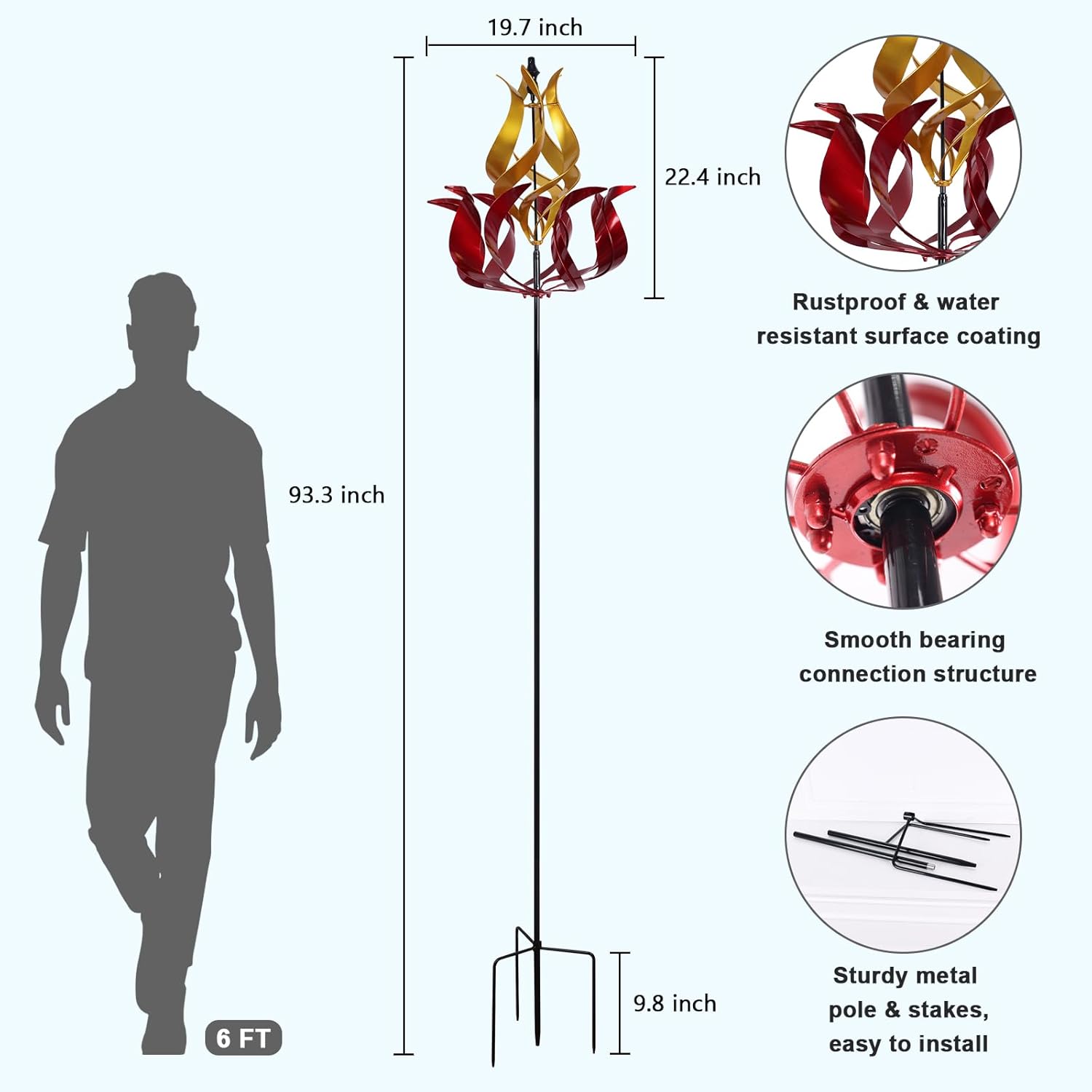 hogardeck Large Wind Spinners Outdoor, 93.3" Metal Tulip Wind Spinner with Stake, 360° Rotating Yard Art, Kinetic Flame Wind Sculptures for Home Lawn Backyard Patio Garden Decor (Red, Golden)