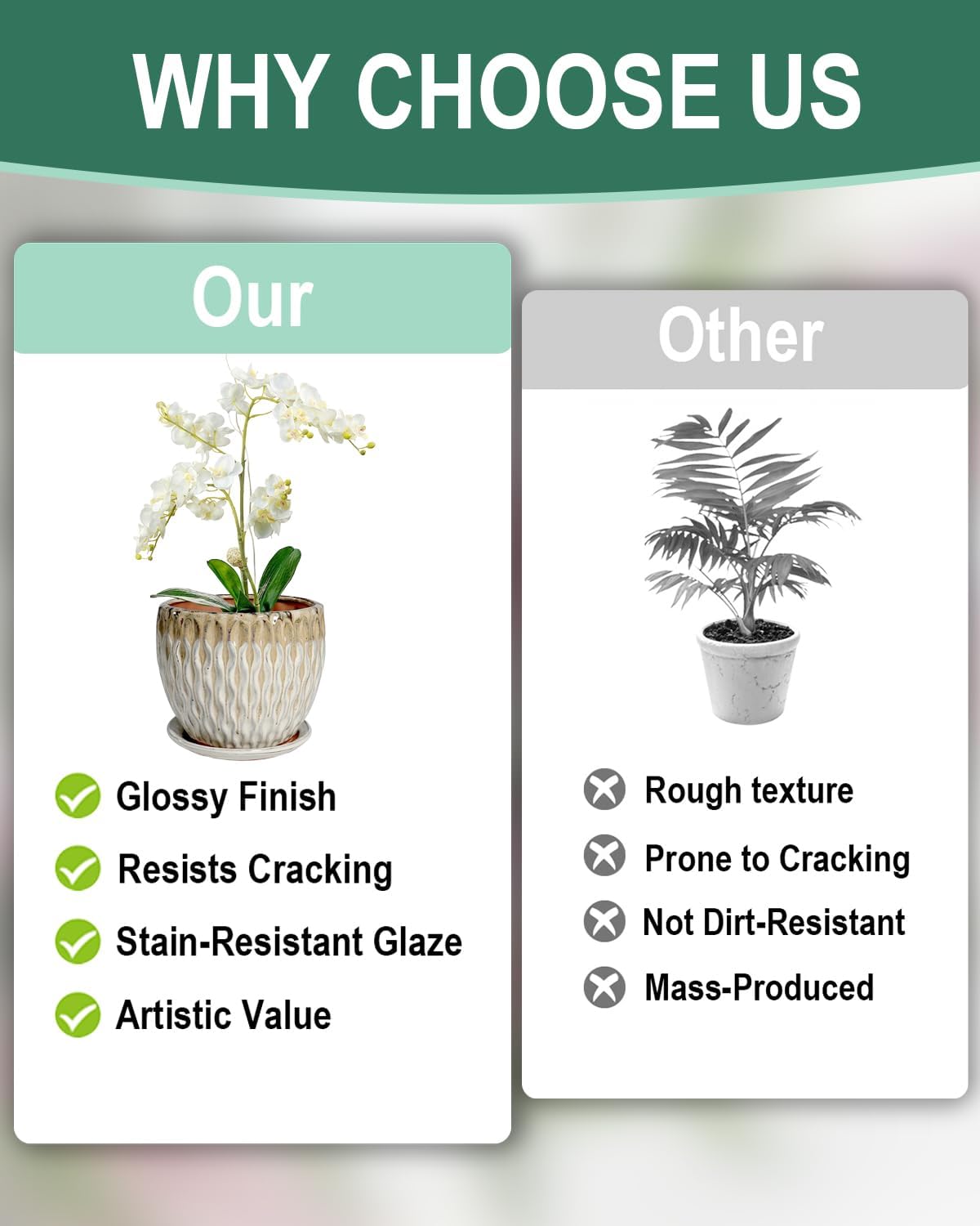 - 【Thick Fired Ceramic】Made from high temperature fired ceramic with a smooth glazed surface. This planter is durable stable and suitable for indoor or outdoor environments