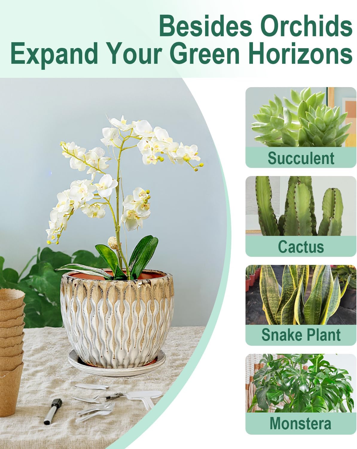 - 【Repot Orchids and More】Designed with enough space for repotting orchids. This pot also fits succulents snake plants herbs and bonsai. Perfect for both novice and experienced plant lovers