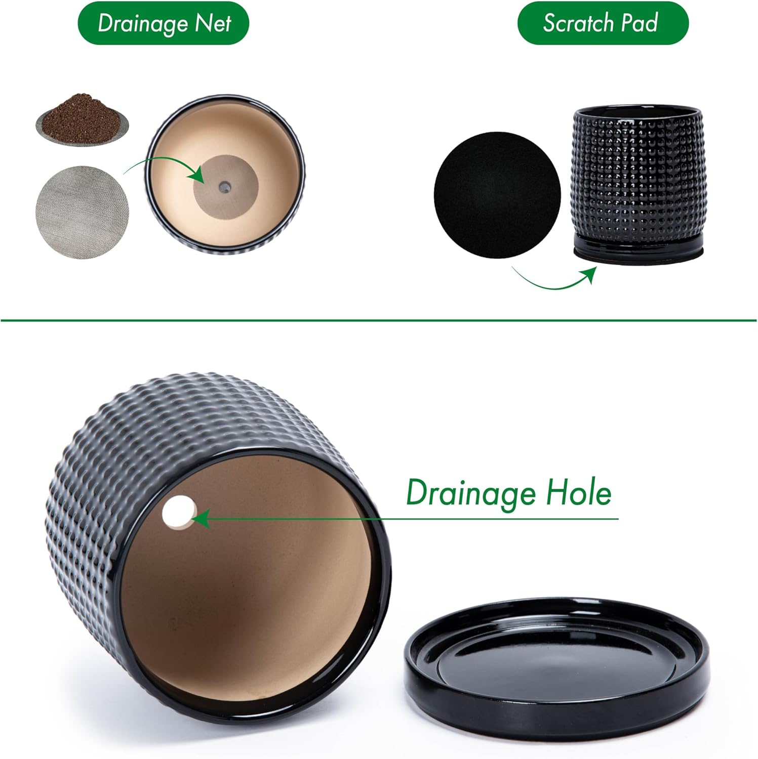 - Included: Each pot comes with drainage hole and fitting detachable drip tray.
