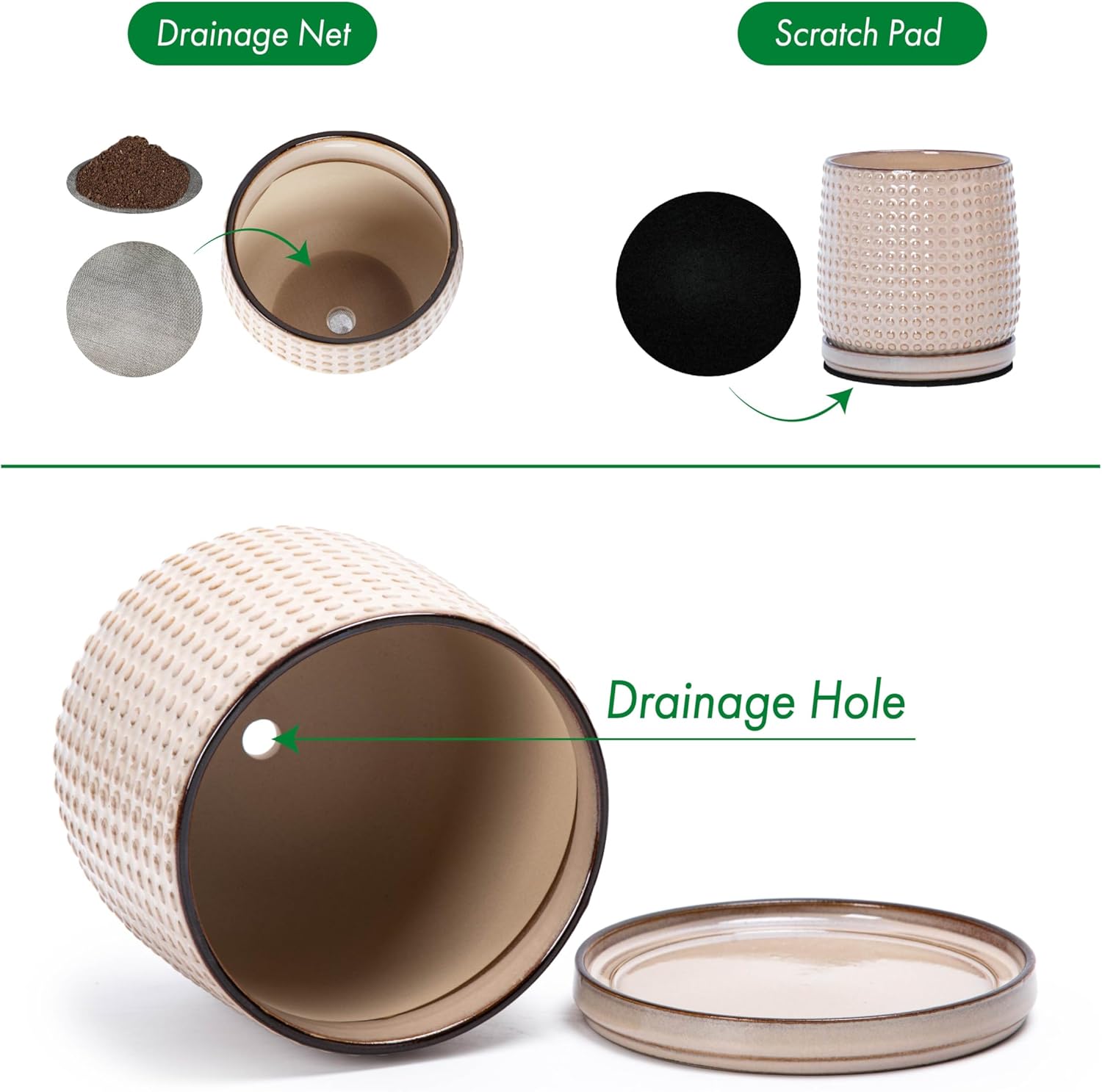 - Included: Each pot comes with drainage hole and fitting detachable drip tray.