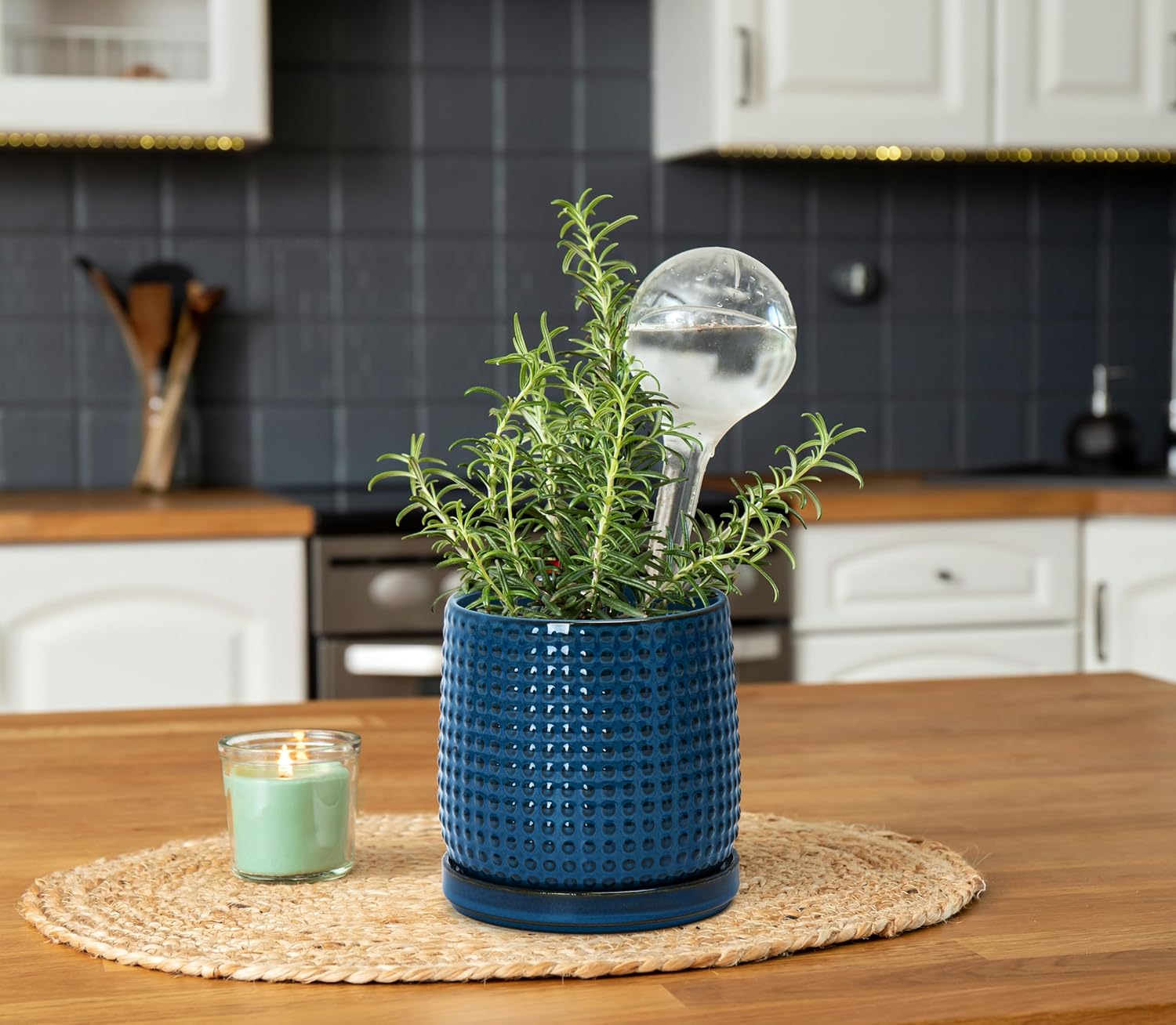 D'vine Dev Set of 2 Ceramic Plants Pots, 4 Inch Beaded Stoneware Flower Pot for Plants with Drainage Hole and Saucer, Midnight Blue, 27-E-Z-3