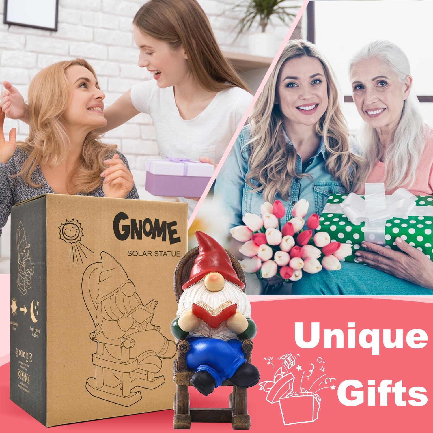 Gnome Reading Solar Statue - Outdoor Solar Gnome Reading on a Chair Garden Decor - Unique Design Ideal Gifts for Women,Mom