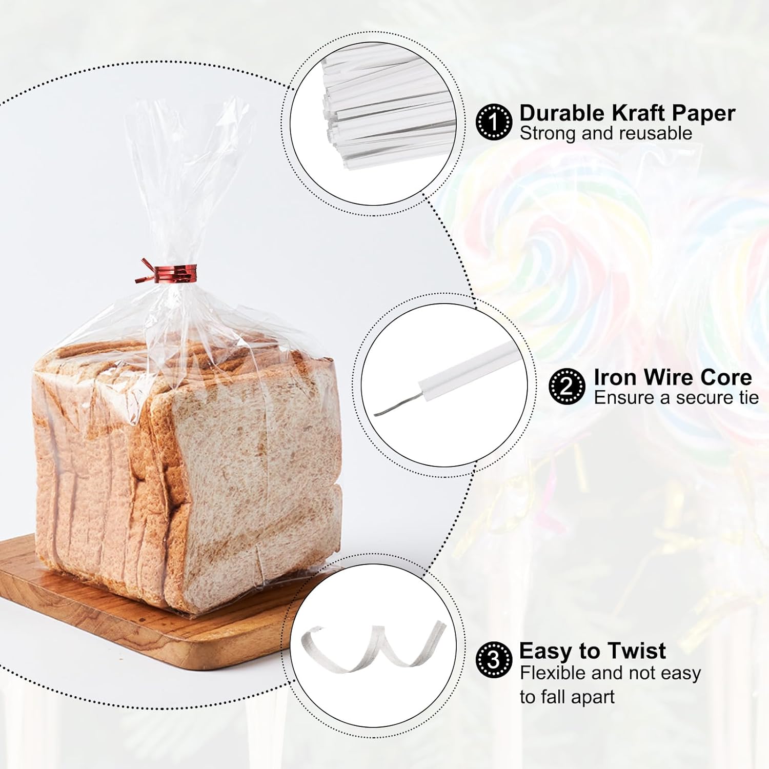 - Material - Made of durable kraft paper with iron wire core, the bread twist ties are strong and reusable, which can be twisted flexibly and are not easy to fall apart.