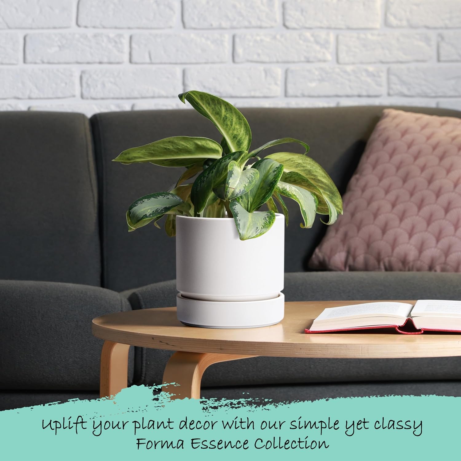 Phoenix Vine 6 Inch Planter Pot with Drainage Hole & Saucer, Deep Water Catch Tray, Straight Cylindrical Round Pot for Plants, Matte White, Pack of 4, 23-B-S-4