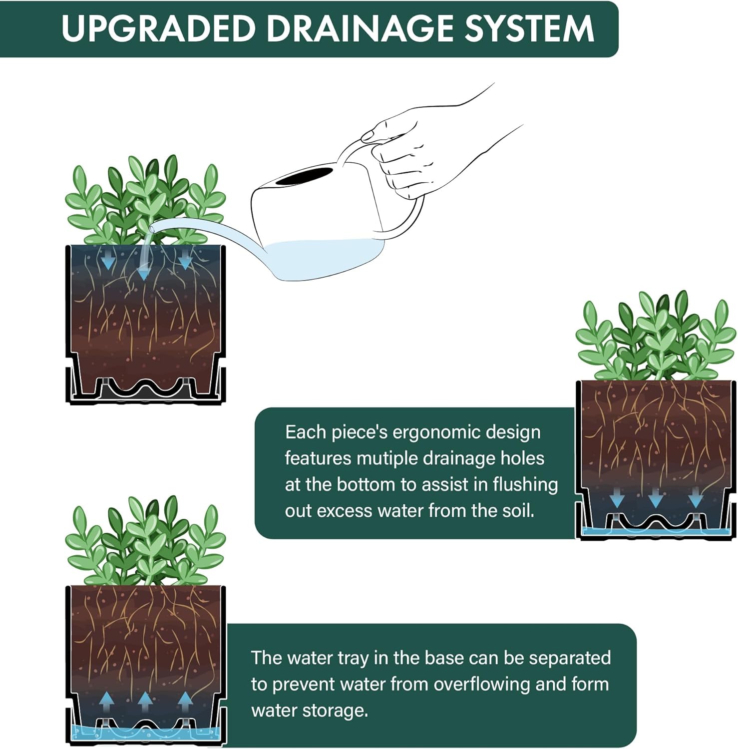 - Bottom Watering Catch Tray Design: Features a deep saucer and pot with a drainage holes, allowing excess water to drain and preventing overwatering. Keeps plants thoroughly hydrated for healthy growth via bottom watering.