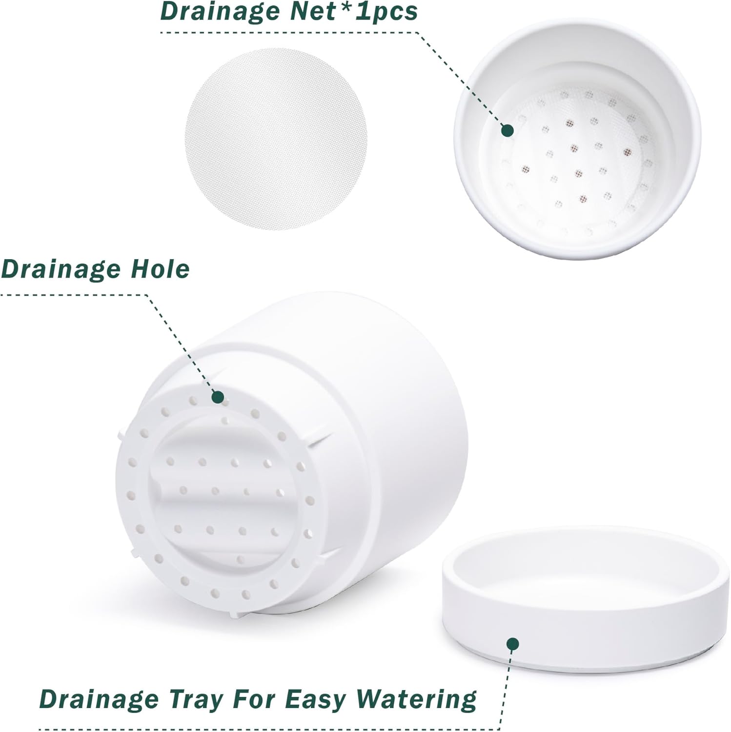 - Bottom Watering Catch Tray Design: Features a deep saucer and pot with a drainage holes, allowing excess water to drain and preventing overwatering. Keeps plants thoroughly hydrated for healthy growth via bottom watering.