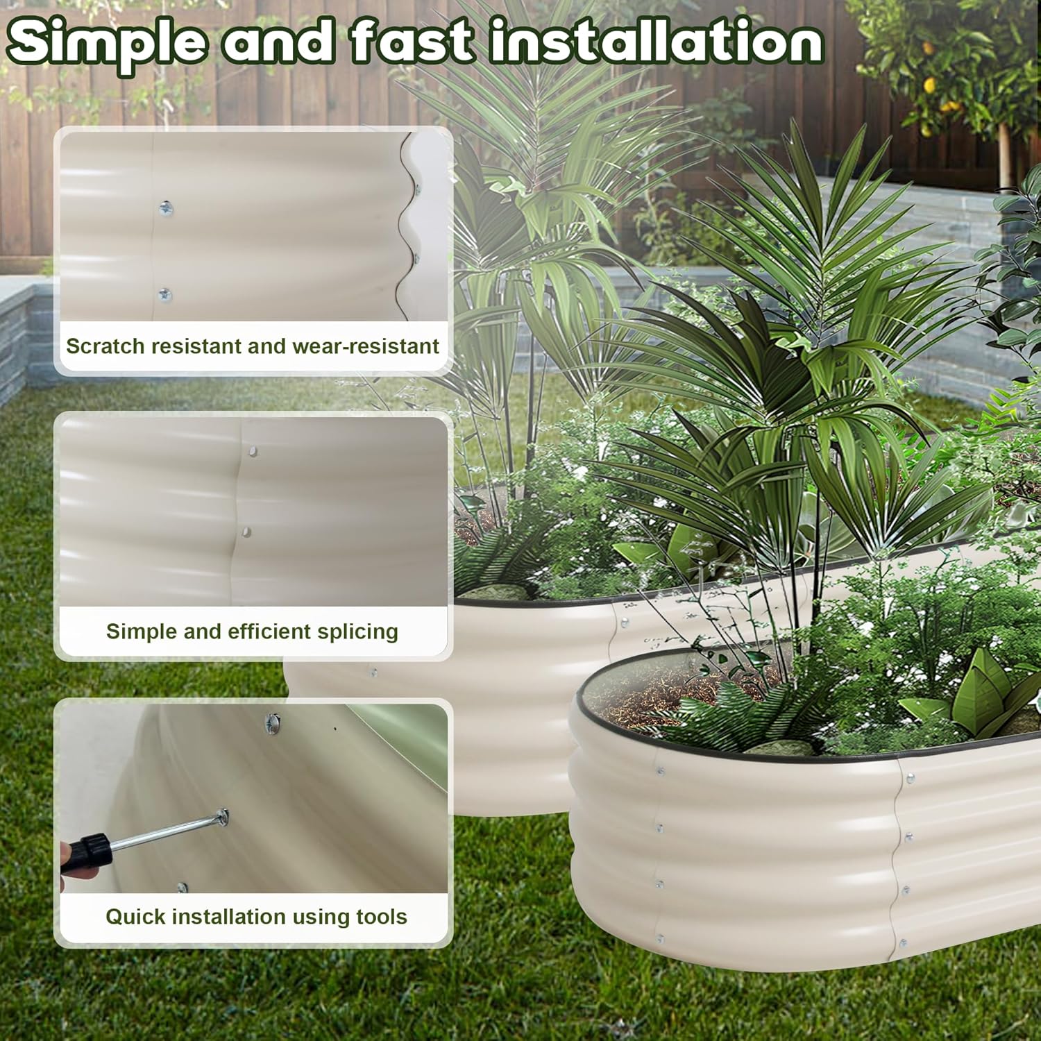 - Convenient Design: The galvanized garden bed features an open bottom design that ensures optimal drainage, effectively preventing root rot caused by overwatering. Additionally, there is no need for concern regarding rain or snow accumulation. The wavy galvanized sheet enhances durability and resilience. Available in multiple size specifications, this garden bed caters to the planting requirements of various plants and settings.