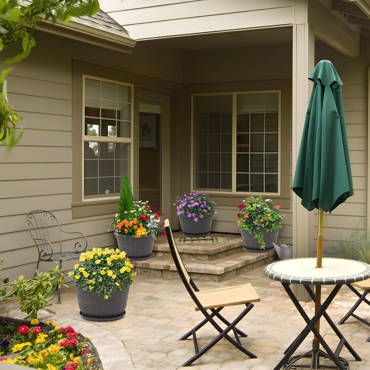 - 【Unique Design】The whiskey barrel planters stands out with its simple texture and classical design mimicking a wine barrel. This distinctive design of the plant pots with drainage holes not only sets your planter apart but also adds a touch of sophistication to indoor or outdoor spaces.