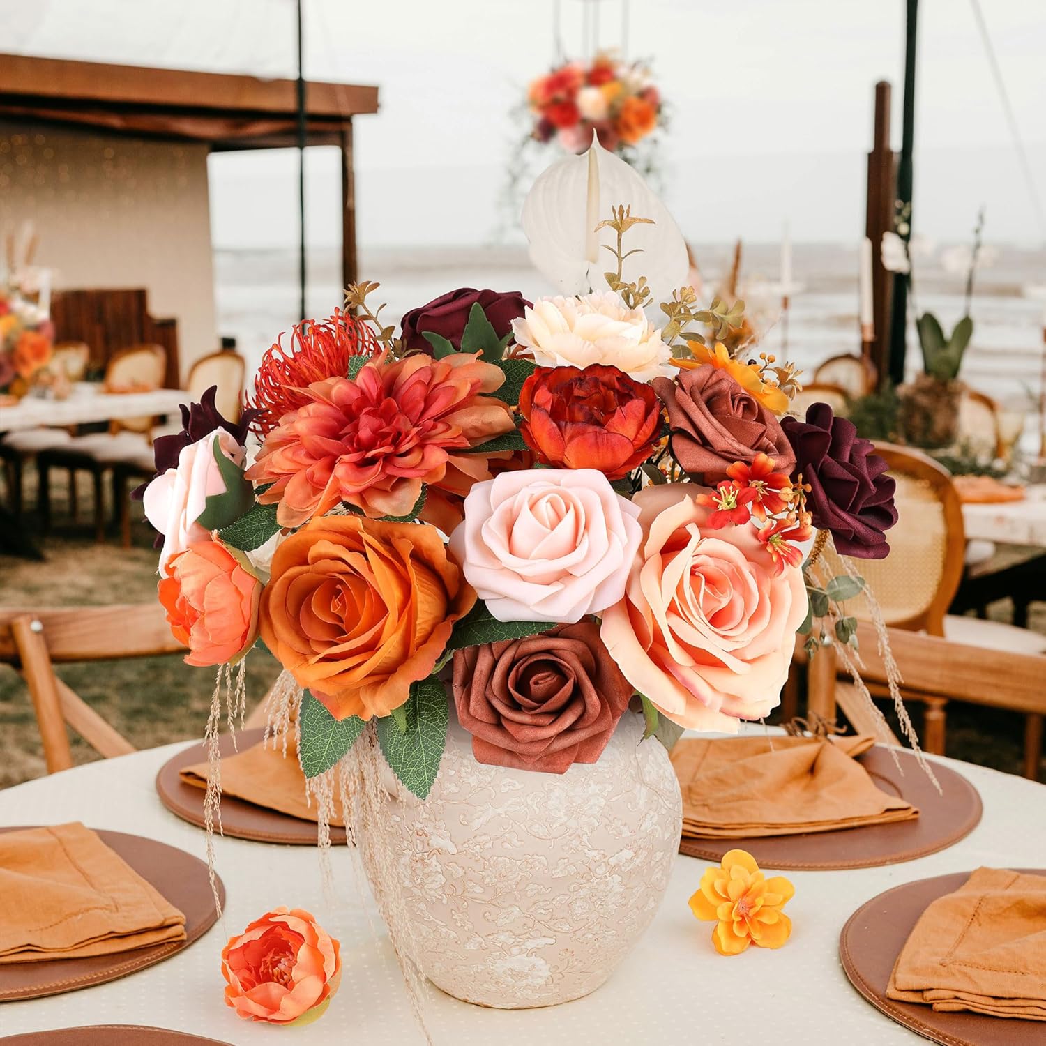 AGIRL Artificial Flowers Combo Silk Mix Purple Fake Flower with Stems for DIY Wedding Bouquets Centerpieces Arrangements Table Chair Decor Baby Shower Home Decor (Terracotta)