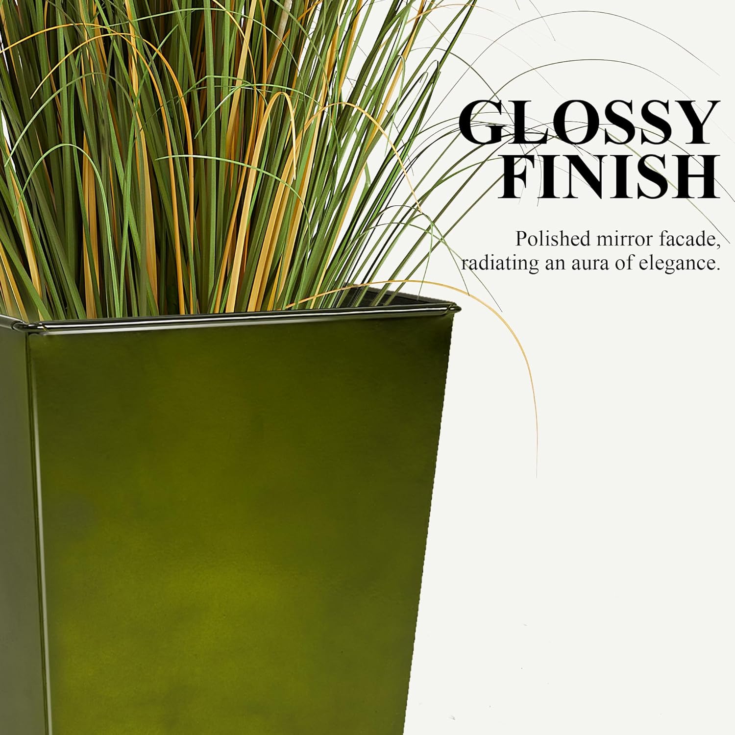 - Stylish Design: WORTH 25" & 28" tall square tapered planters feature a luxurious glossy green finish; The sleek, modern design seamlessly complements any decor style, making these planters a stylish addition to your home or garden