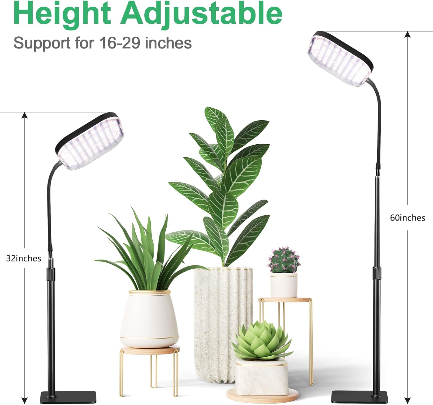 - 3 Time Settings and 5 Brightness Levels: The standing plant light support 4/8/12h timer settings, in 24h cycle, the plant lights will work 4/8/12h as you set. Likewise, you can also set 5 brightness levels, which helps you adjust the light requirements for your plants at different growth stages.