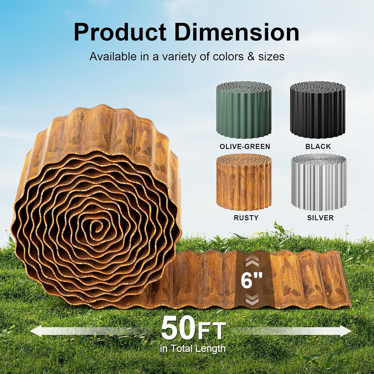 Land Guard Corrugated Garden Edging Border, 6" × 50' Landscape Paver Edging, Tall Landscape Edging, Fence for Garden, Flower Bed, Lawn and Landscape Edging (Rusty)