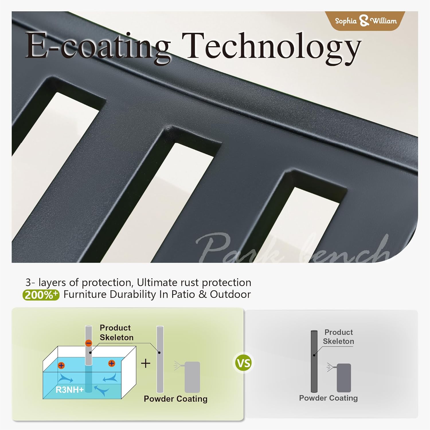 - Weather Resistant: The outdoor garden bench is made of cast iron to ensure sturdiness and stability, making it heavy-duty oriented and durable enough for long-term use. The surface comes with special powder coating for rust resistant and weather resistant