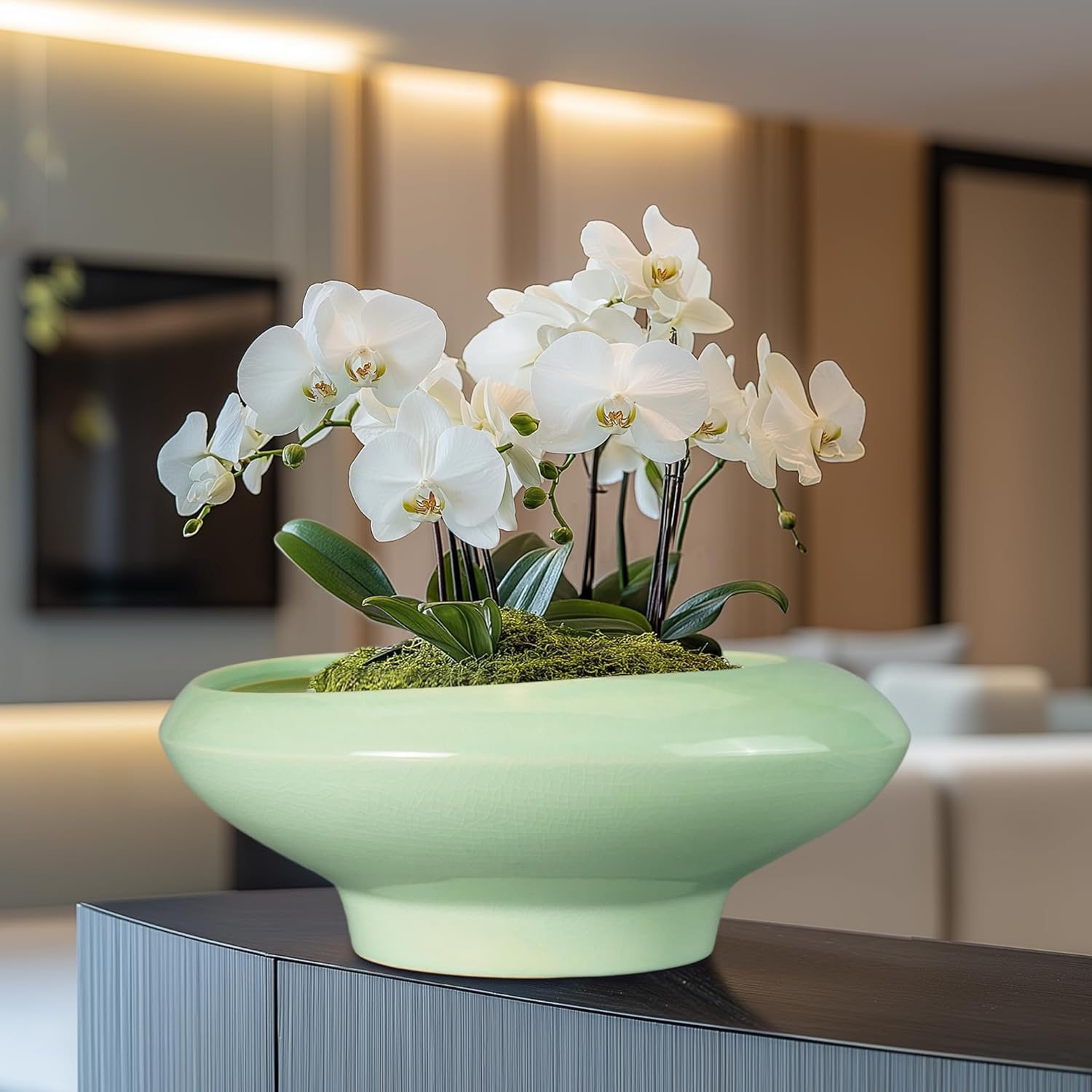 Ceramic Bonsai Pots - Large Succulent Planter 13 Inch Plant Pot Indoor Succulent Pot with Drainage Hole Outdoor Planter Bonsai Tree Pot for House Home Garden Office Decor Green