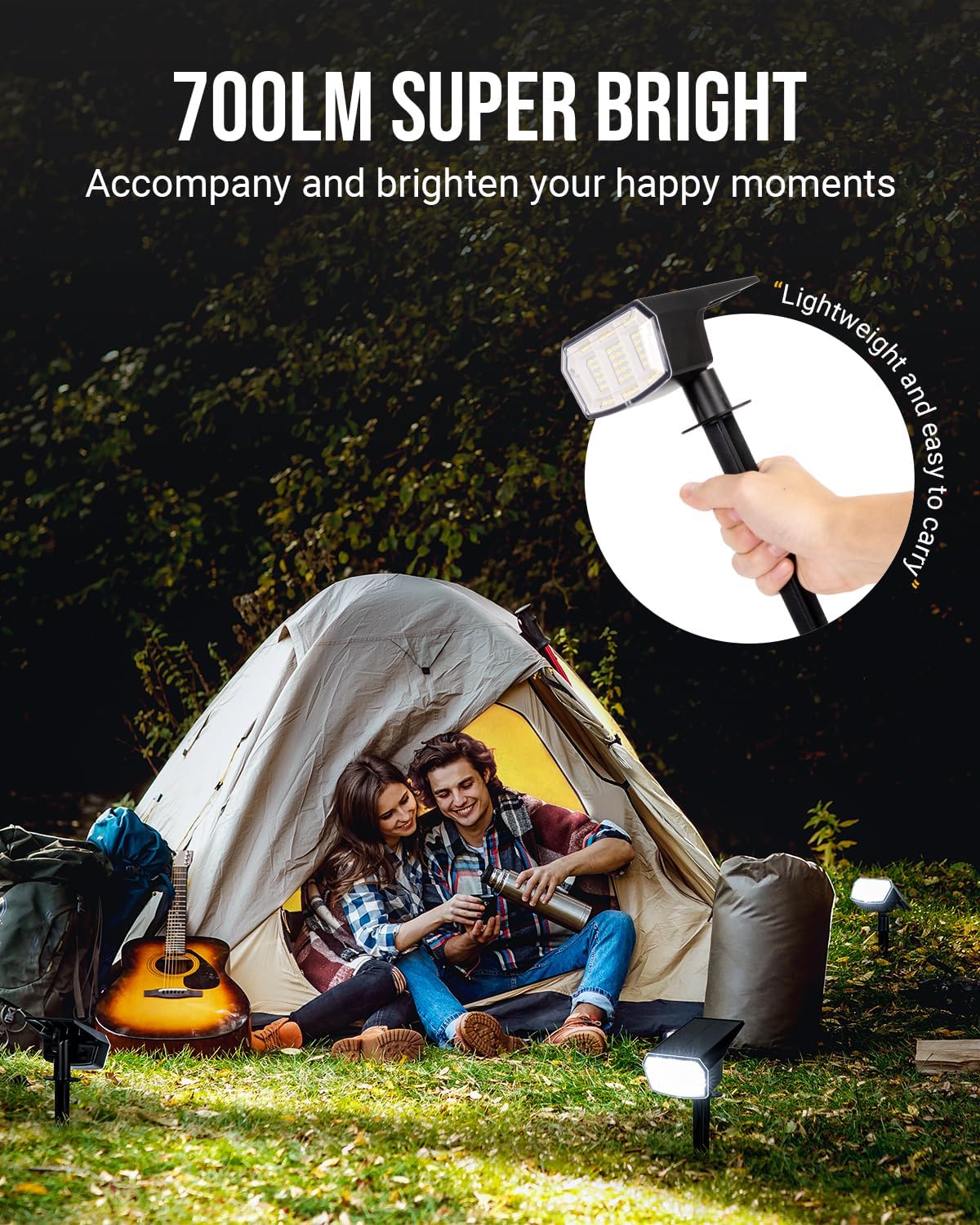 - [Automatic ON & OFF]: These solar spot lights use 1200 mAh batteries and larger solar panels with a conversion rate of up to 25%, which only need 6-8 hours charging during the day, and automatically light up at night to emit a wide, bright light